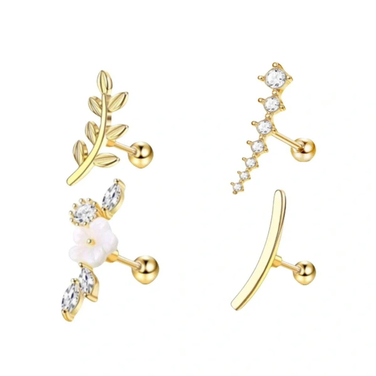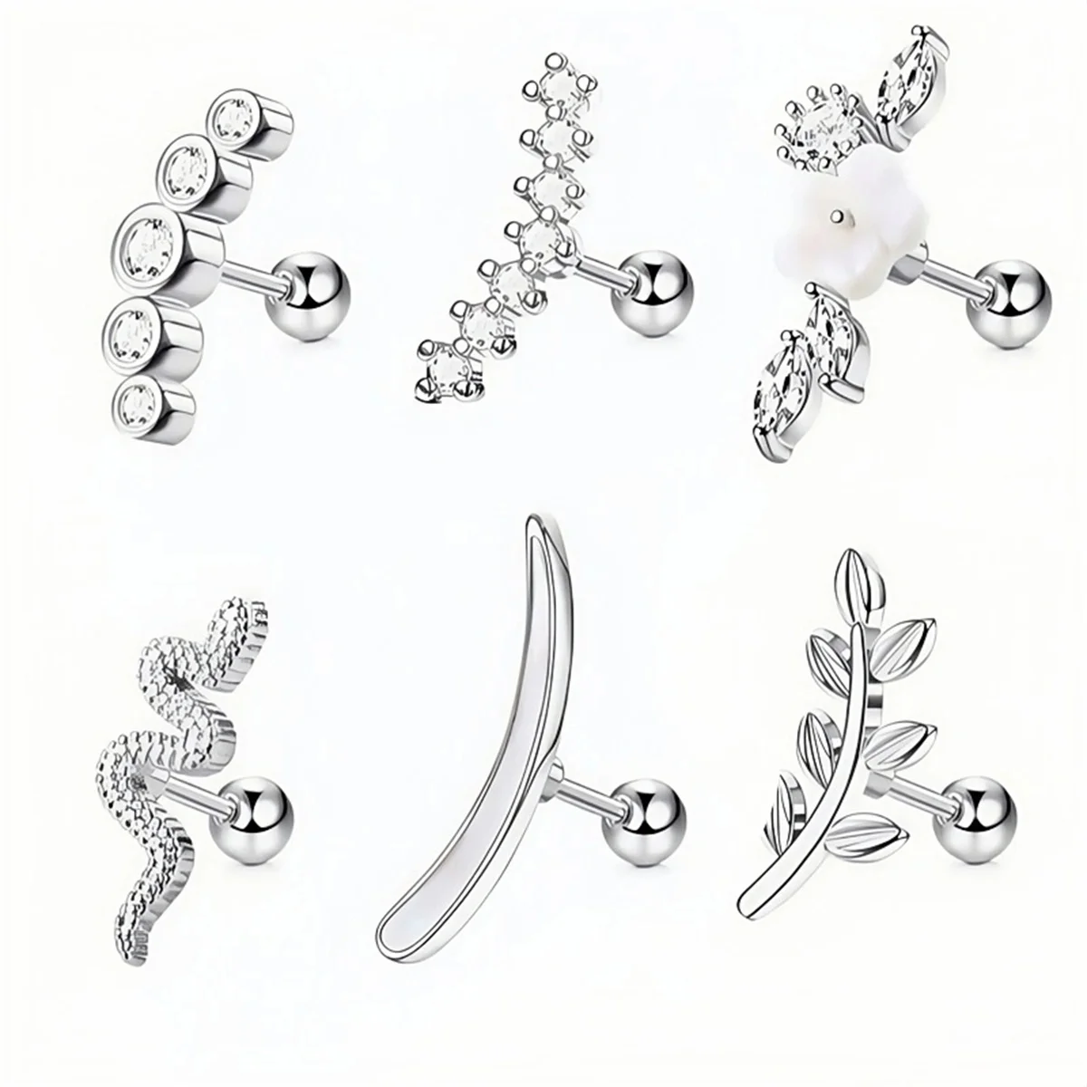 1/4/6/8Pcs 16G Stainless Steel Screw Back Stud Earrings for Women,Cubic Zerconia Cartilage Conch Helix Ear Piercing Jewelry