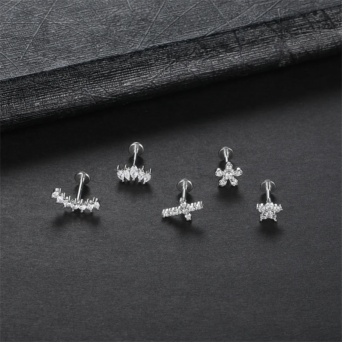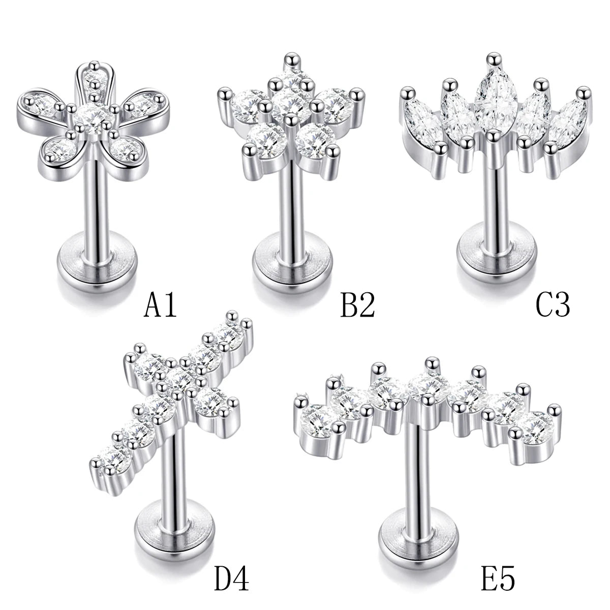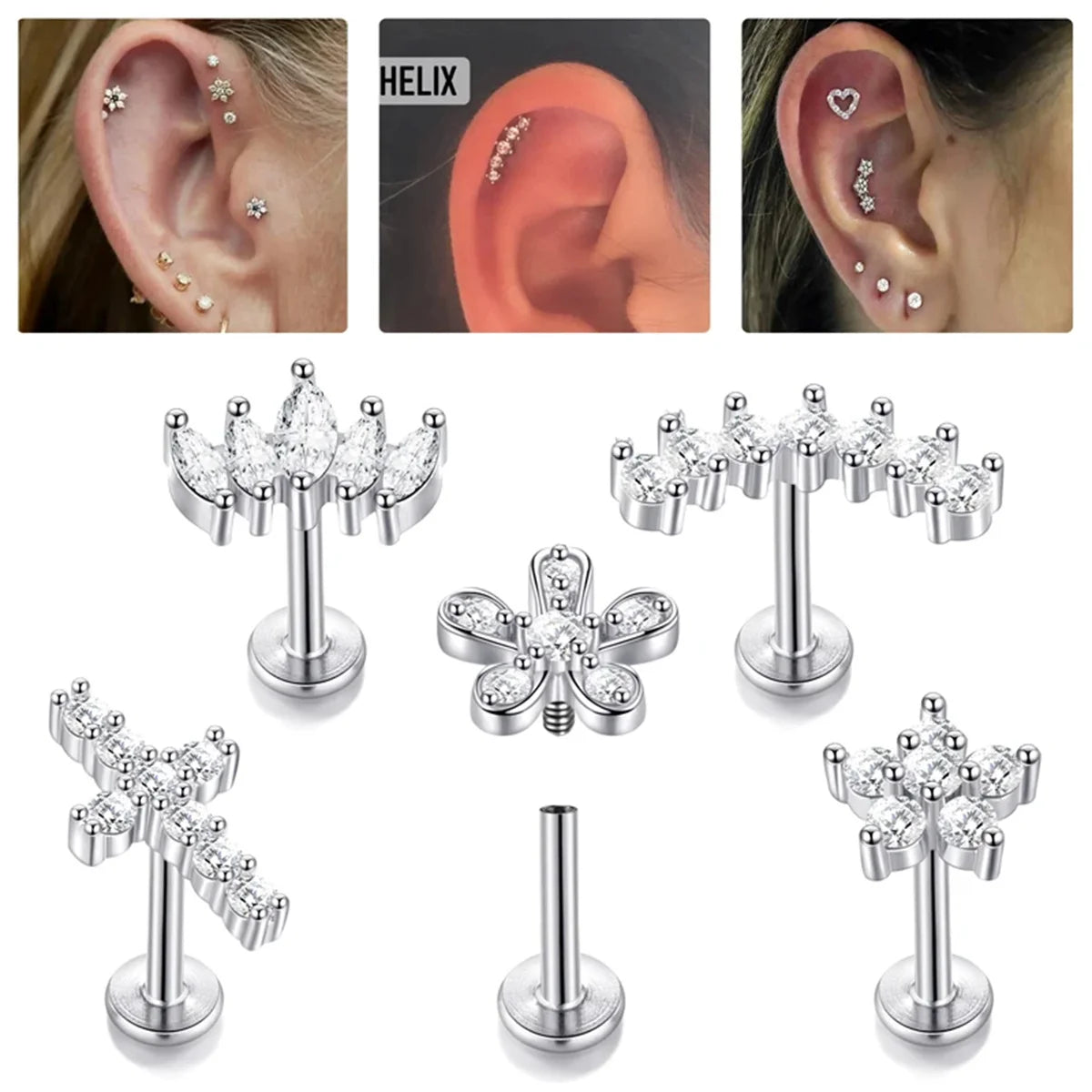 1/5Pcs 316L Stainless Steel Delicate Flower Tragus Cartilage Stud Earring,Internally Threade Daith Helix Ear Piercing Jewelry