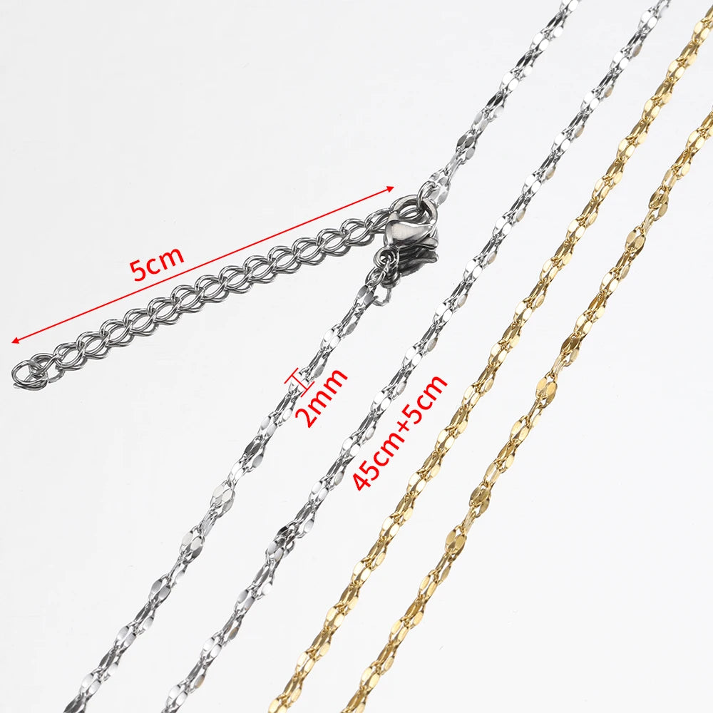 10pcs 5pcs Stainless Steel Bead Chain Necklace Chains for DIY Jewelry Making Findings 45cm+5cm Chain with Lobster Clasps No Fade
