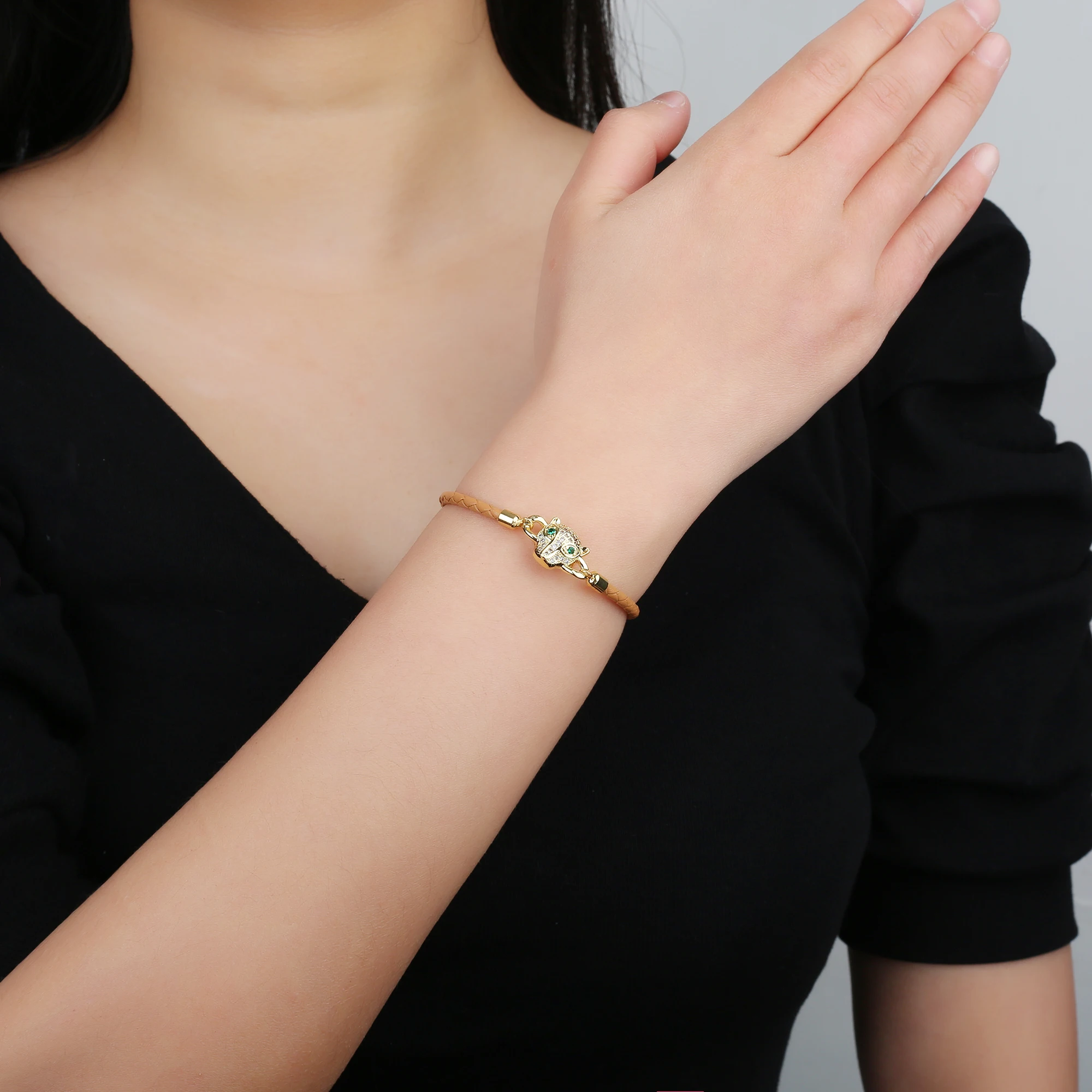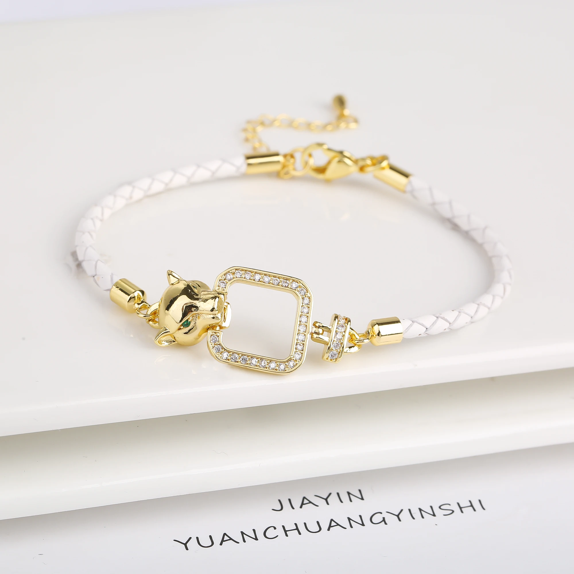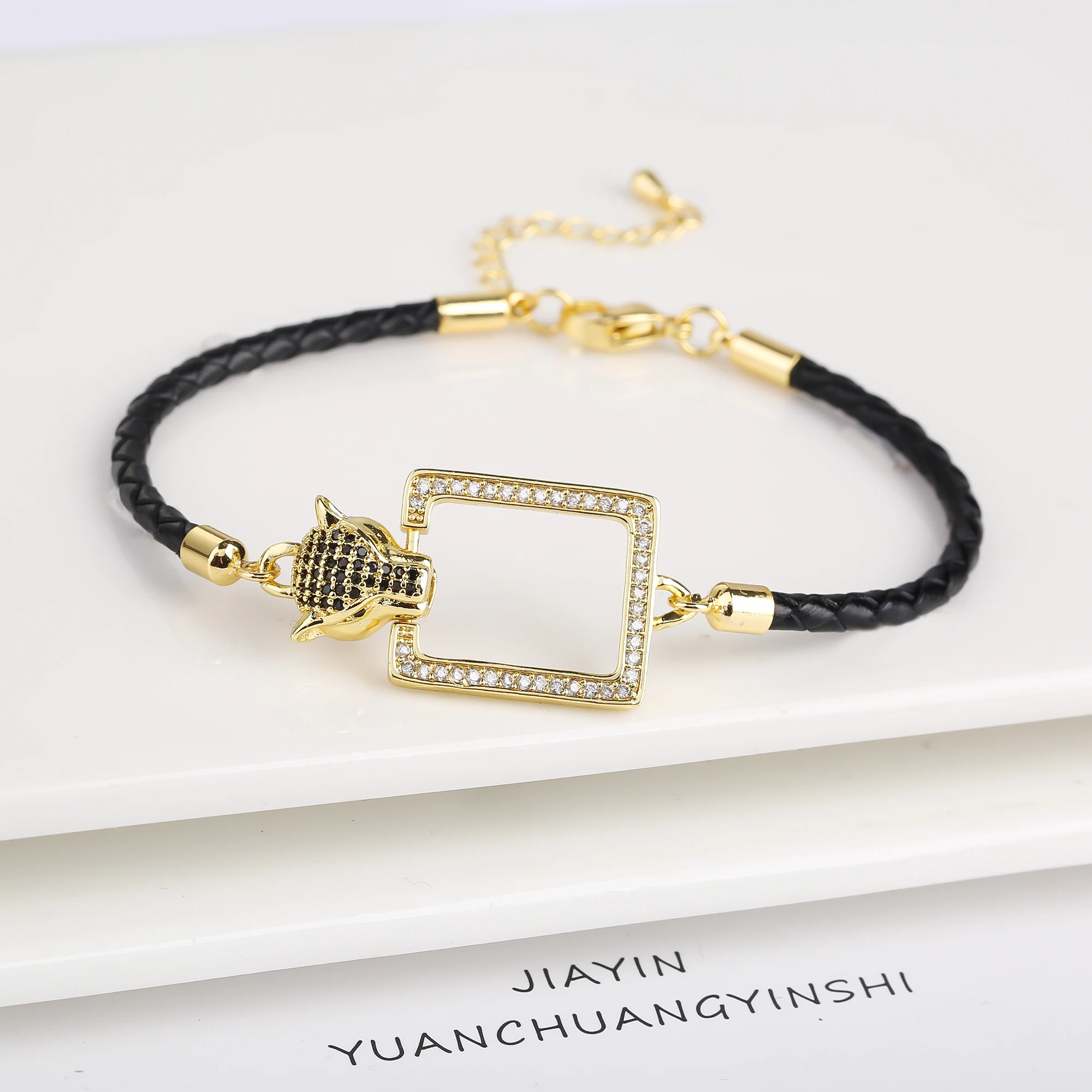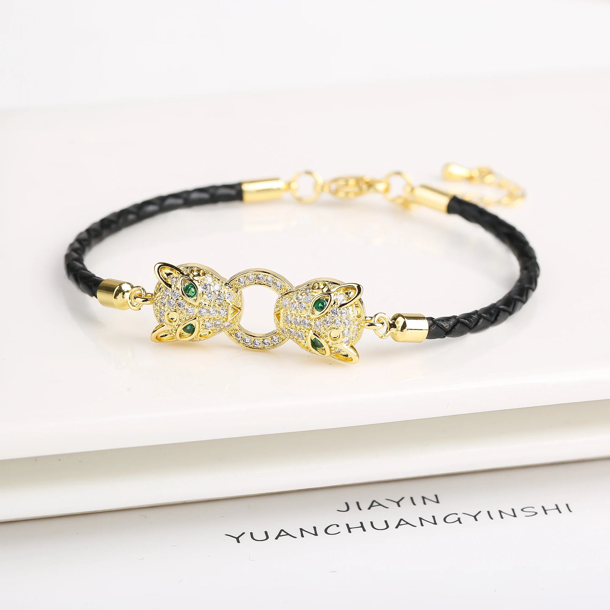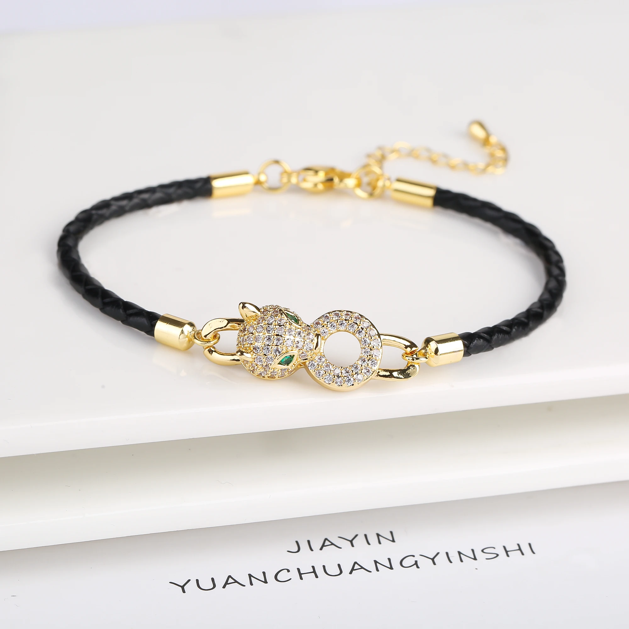 Name: 15 Style Hot Sale Shiny Zirconia Animal Leopard Head Leather Braided Bracelet Hip Hop for Men Women Fashion Jewelry Accessories