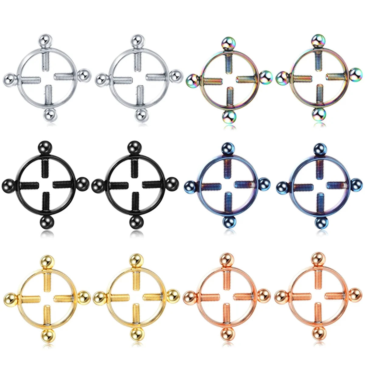 1Pair Fashion Stainless Steel Adjustable Nipple Ring For Women, Various Colors Clip On Nipple Rings Fake Nipple Piercing Jewelry