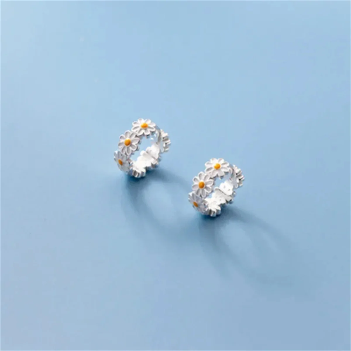 2/4Pcs Stainles Steel Sweet Flower Hoop Earrings For Women,New Fashion Round Ring For Wedding Party Temperament Ear Jewelry Gift