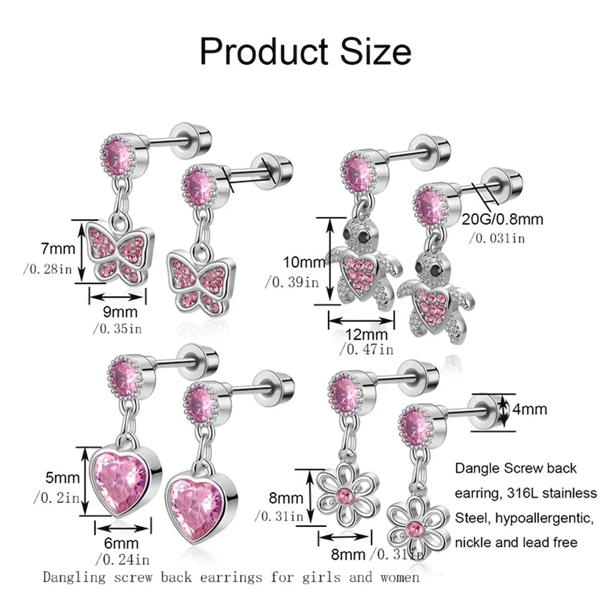 2/4pcs Stainless Steel Cute Pendant Cubic Zirconia Screw back Stud Earring,Daith Cartilage Tragus Helix Conch Piercing Jewelry