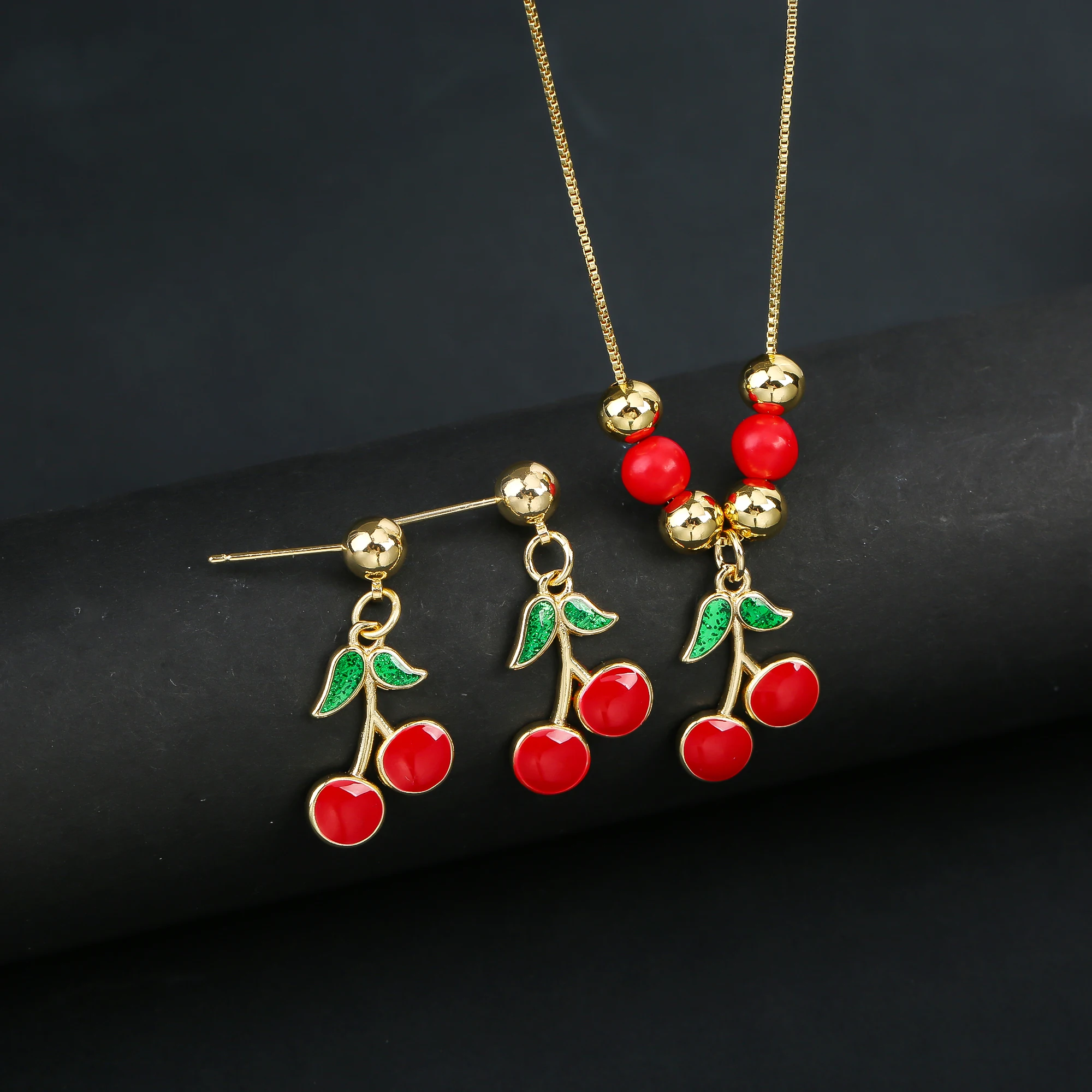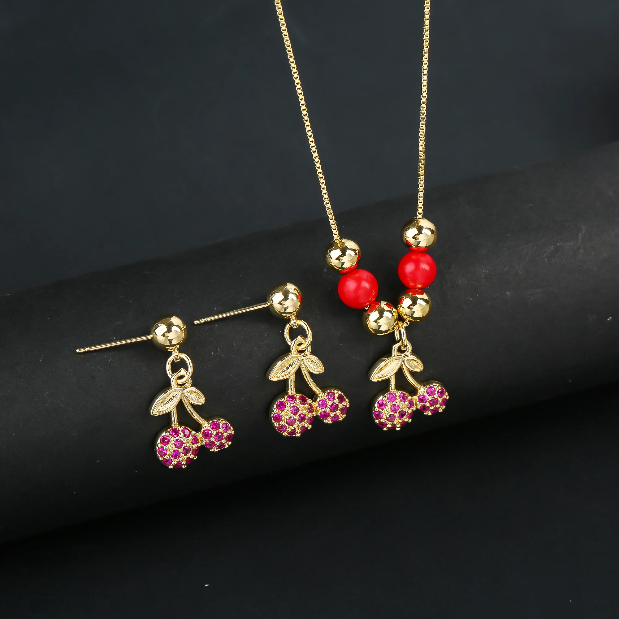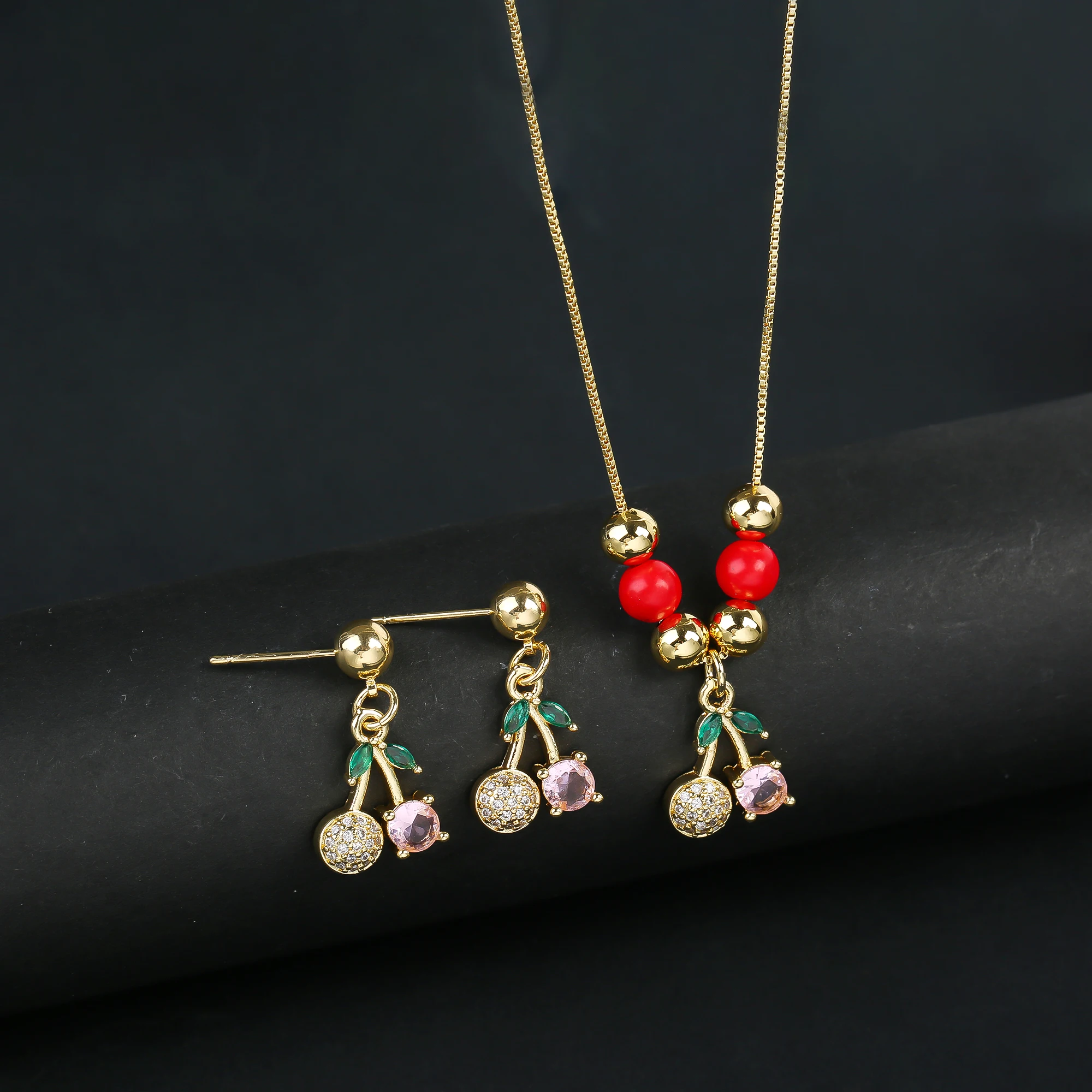 2pcs 22 Style Fashion Fruit Cherry Zircon Crystal Jewelry Set Earrings Necklace For Women Female New Trend Party Jewelry Gift