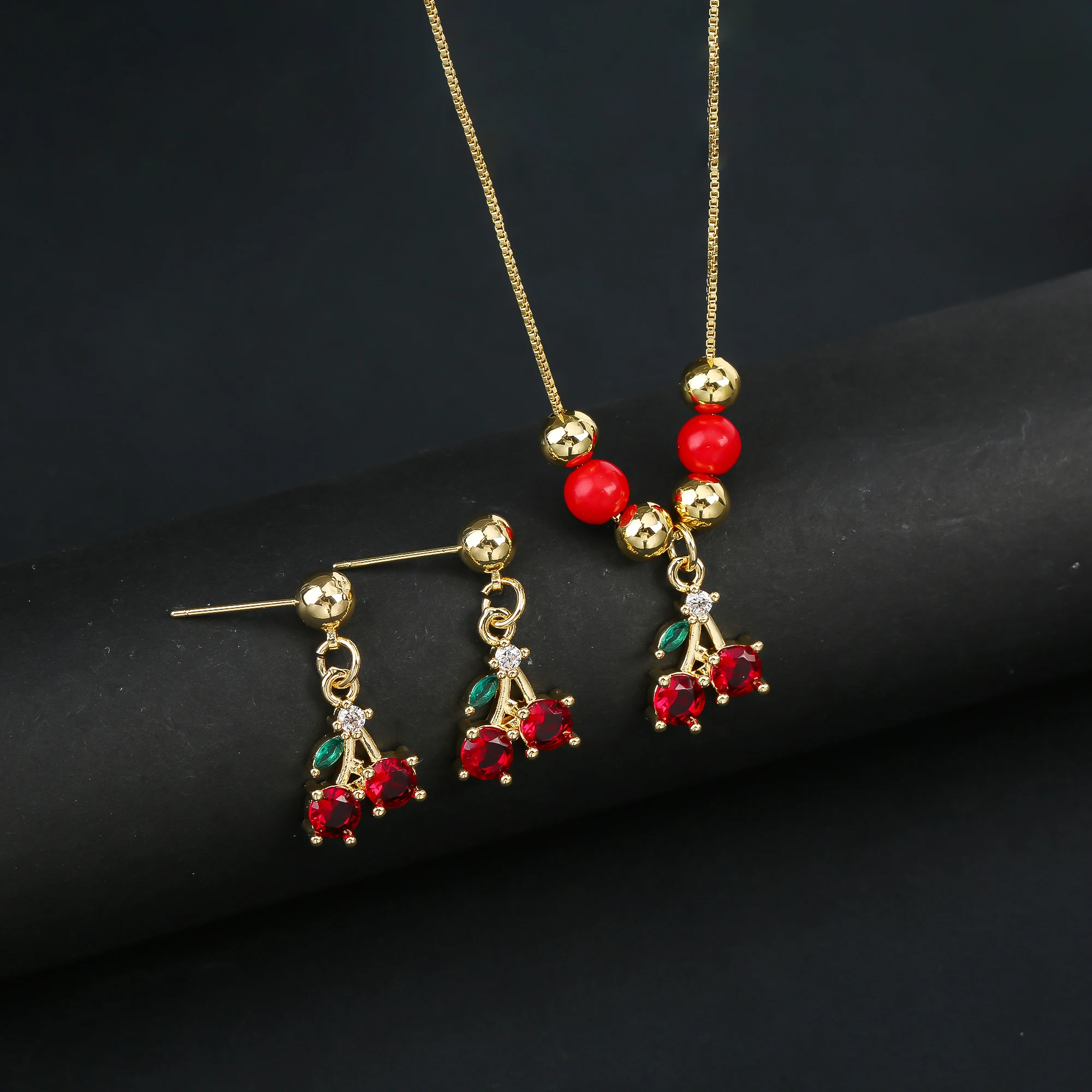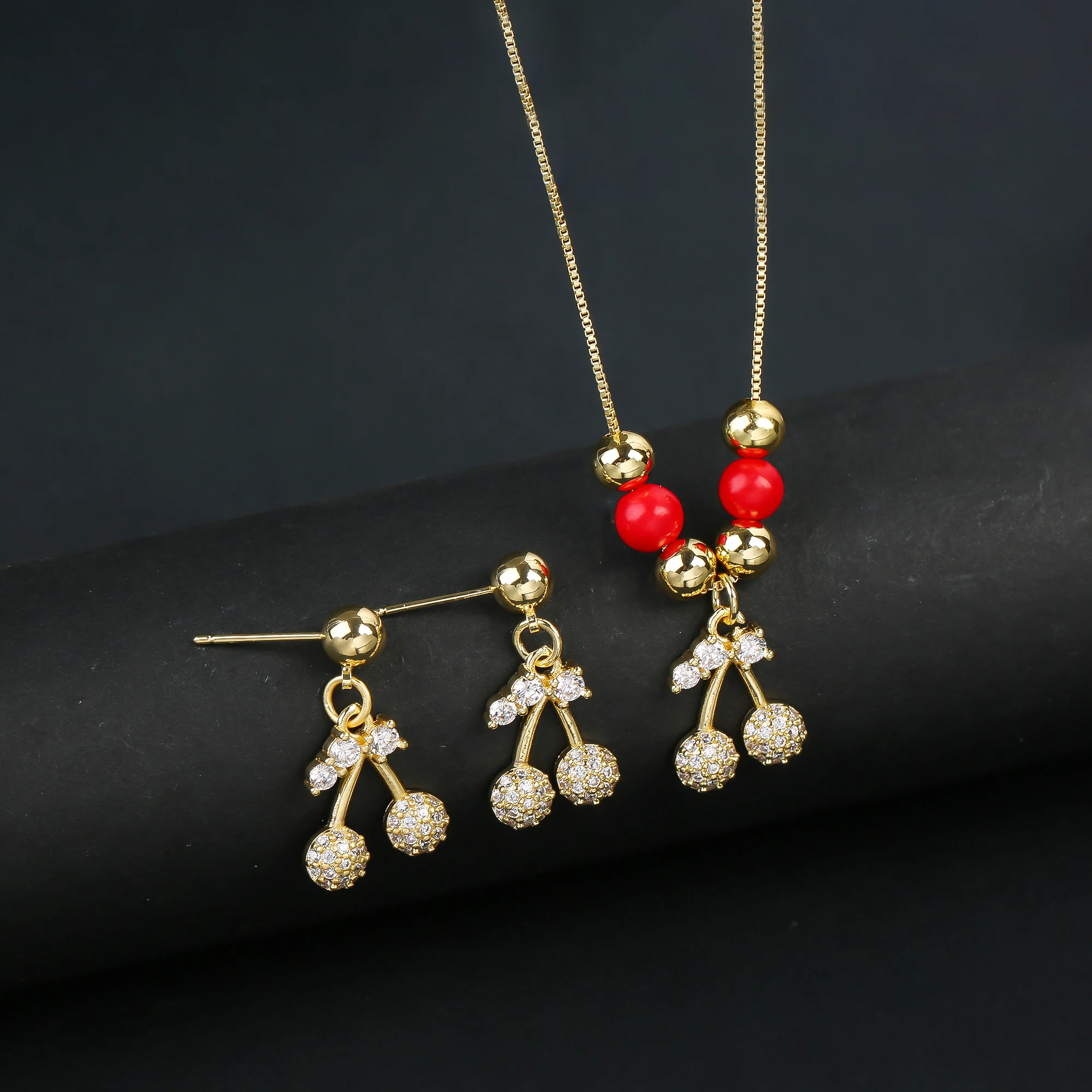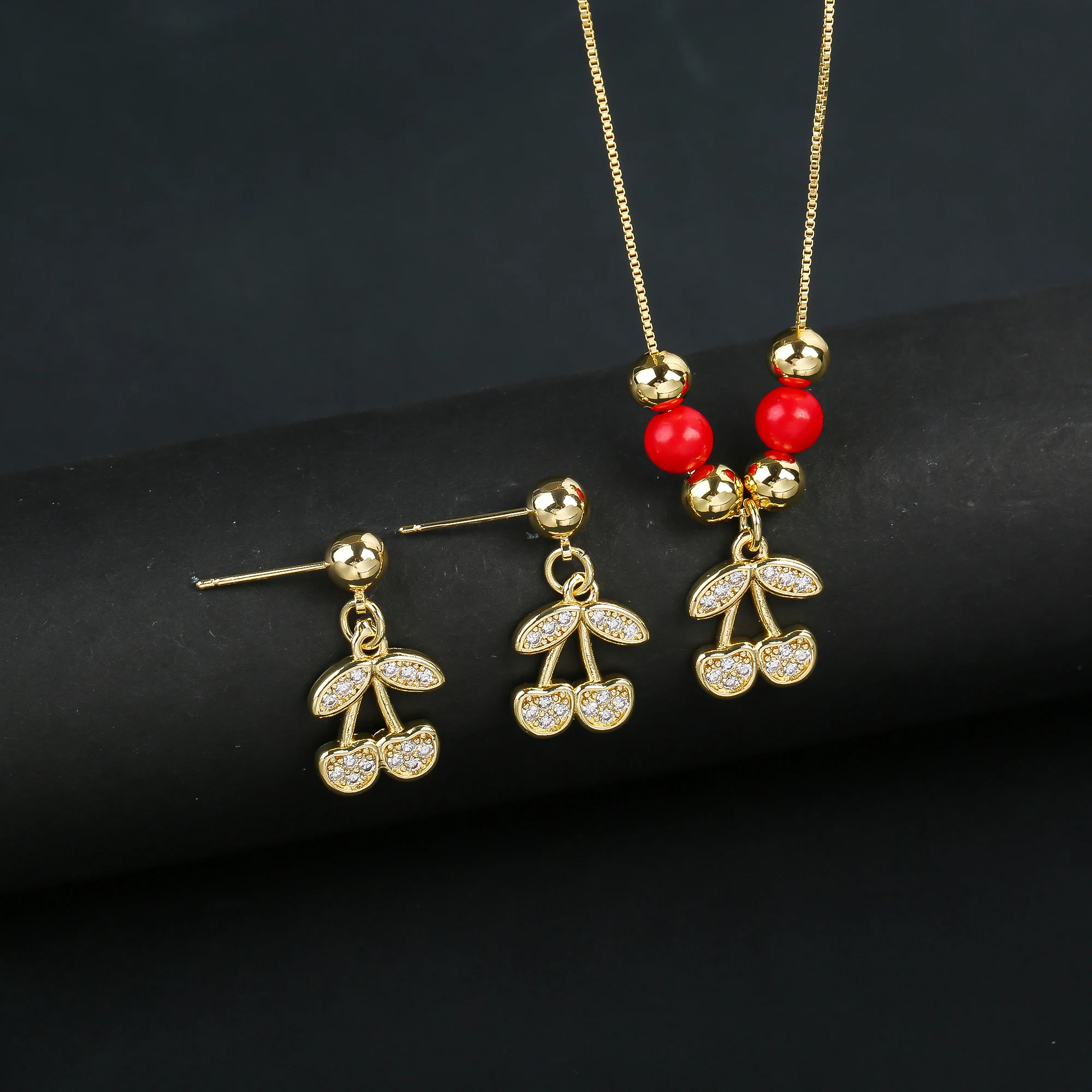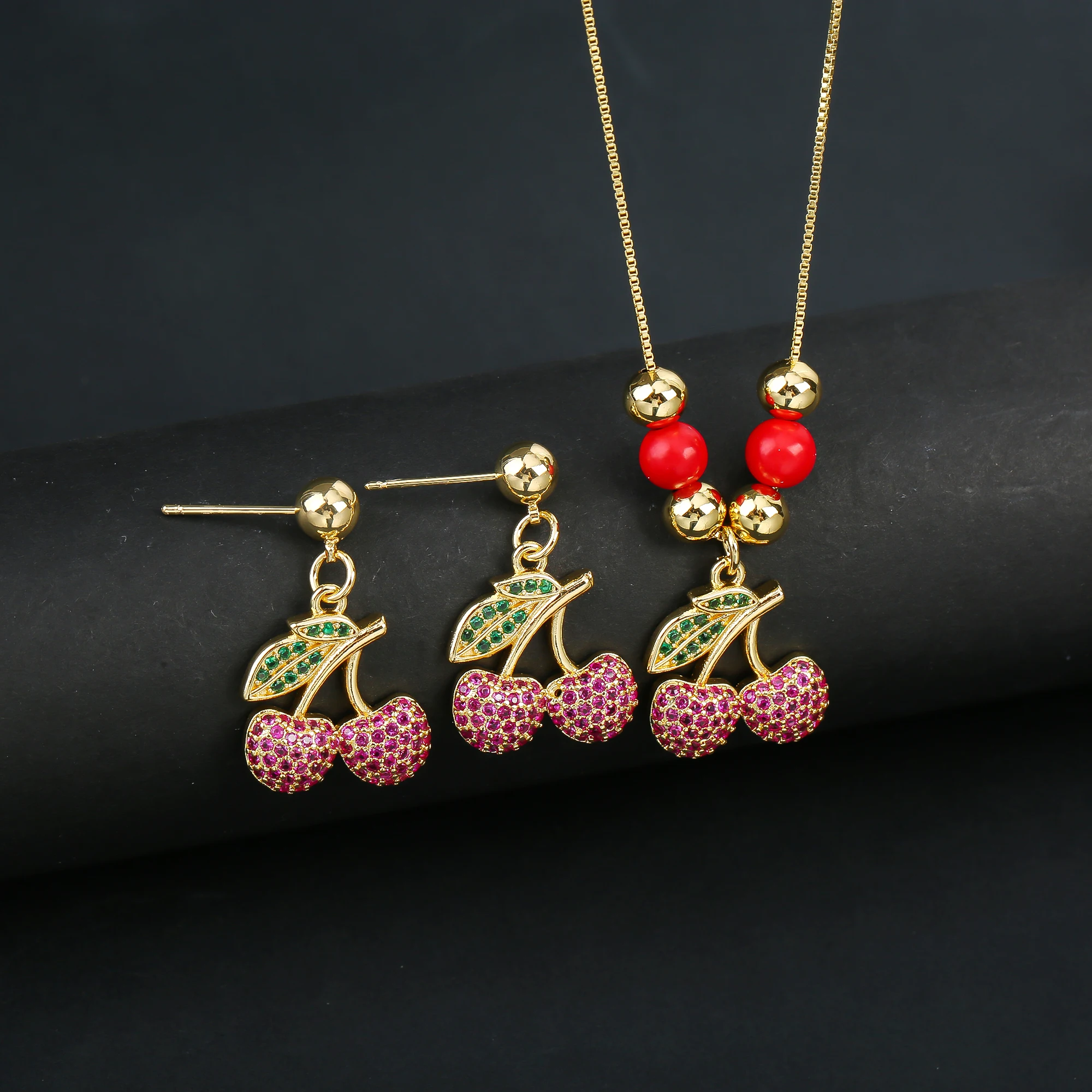 Name: 2pcs 22 Style Fashion Fruit Cherry Zircon Crystal Jewelry Set Earrings Necklace For Women Female New Trend Party Jewelry Gift
