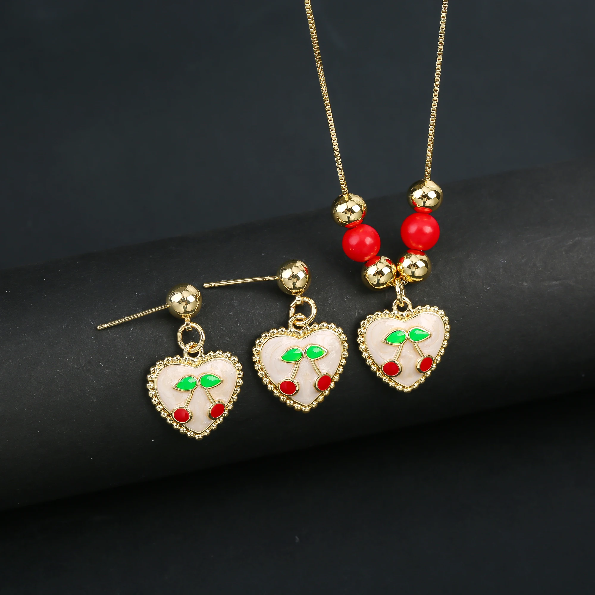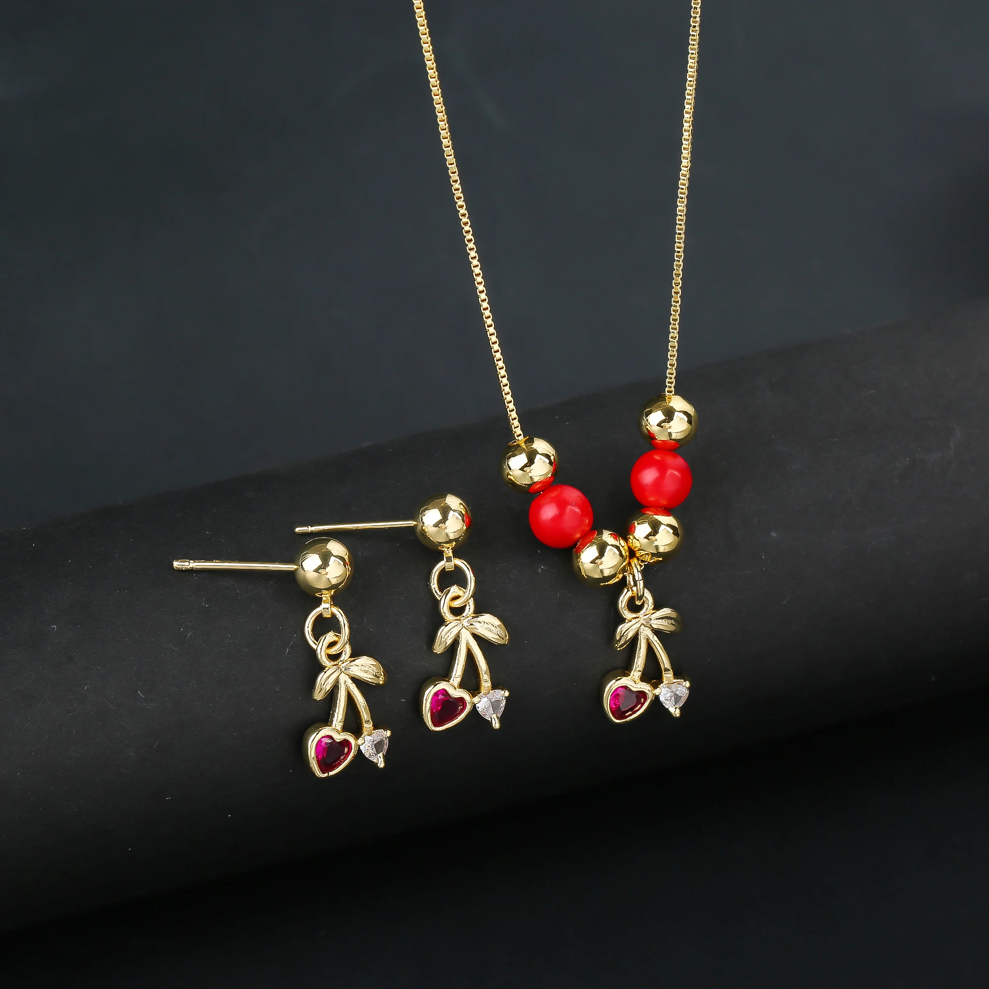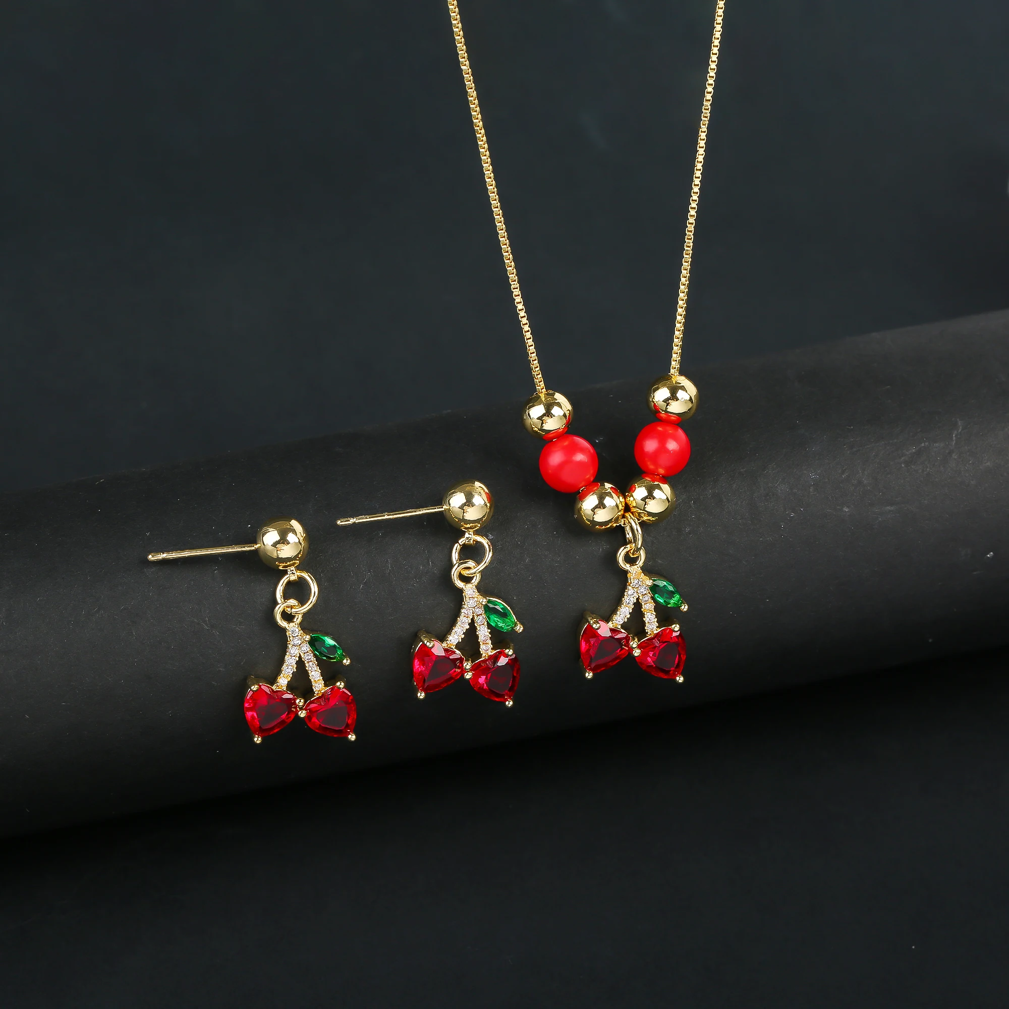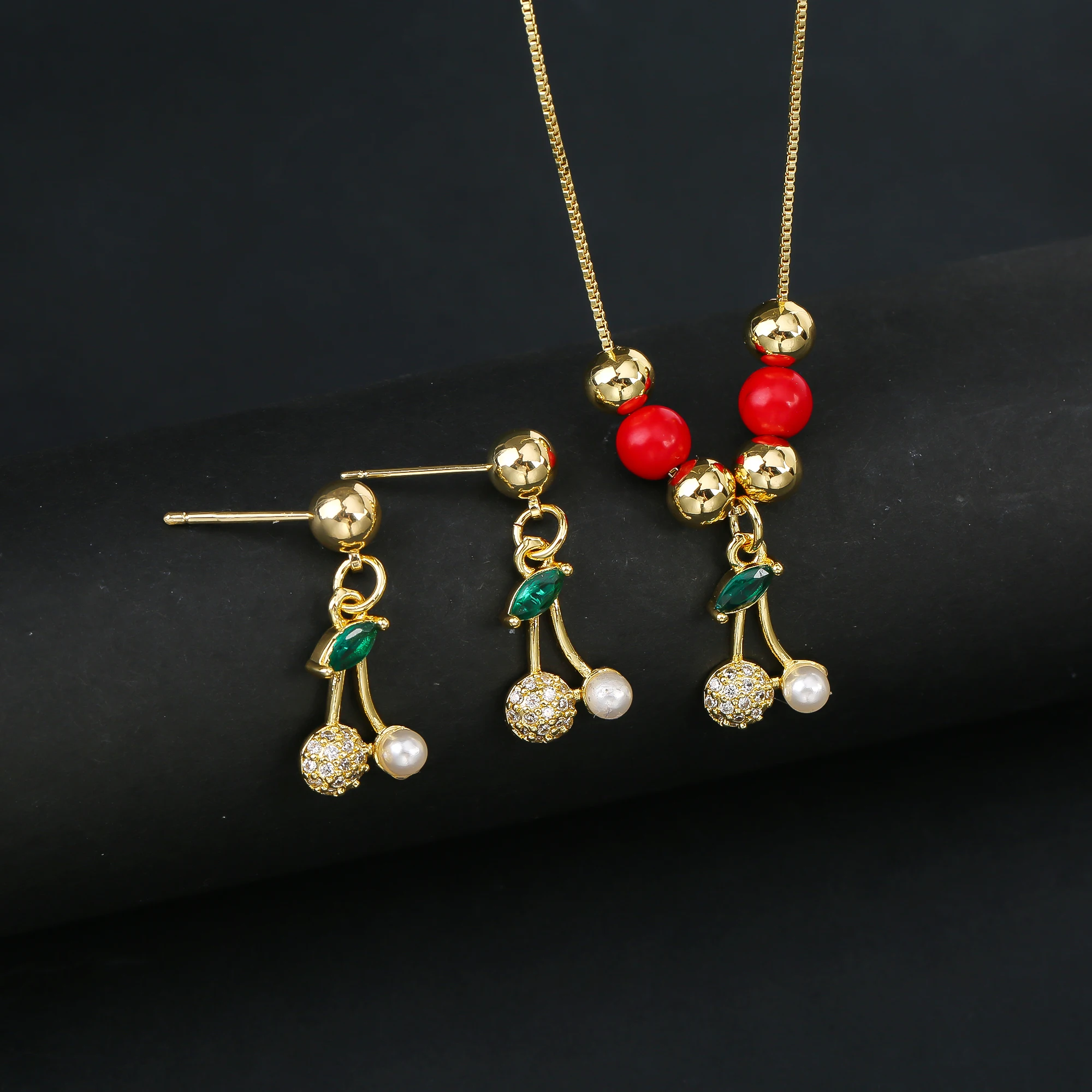 Name: 2pcs 22 Style Fashion Fruit Cherry Zircon Crystal Jewelry Set Earrings Necklace For Women Female New Trend Party Jewelry Gift