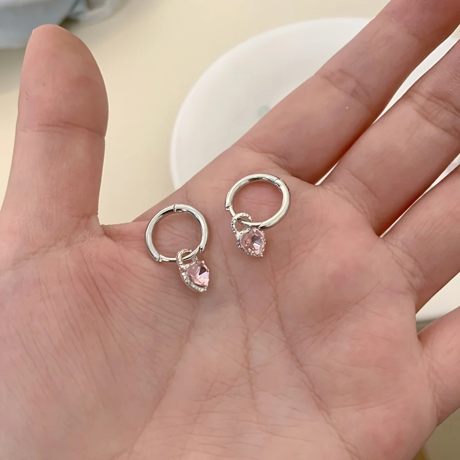2Pcs Fashion Minimalist Rhinestone Studded Heart-shaped Earrings For Women,Hypoallergenic Cartilage Piercing Jewelry Accessories