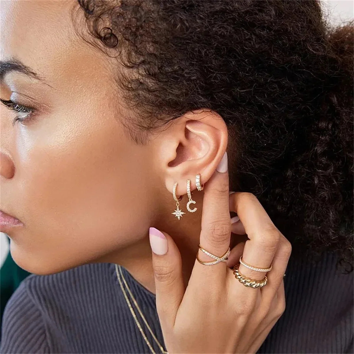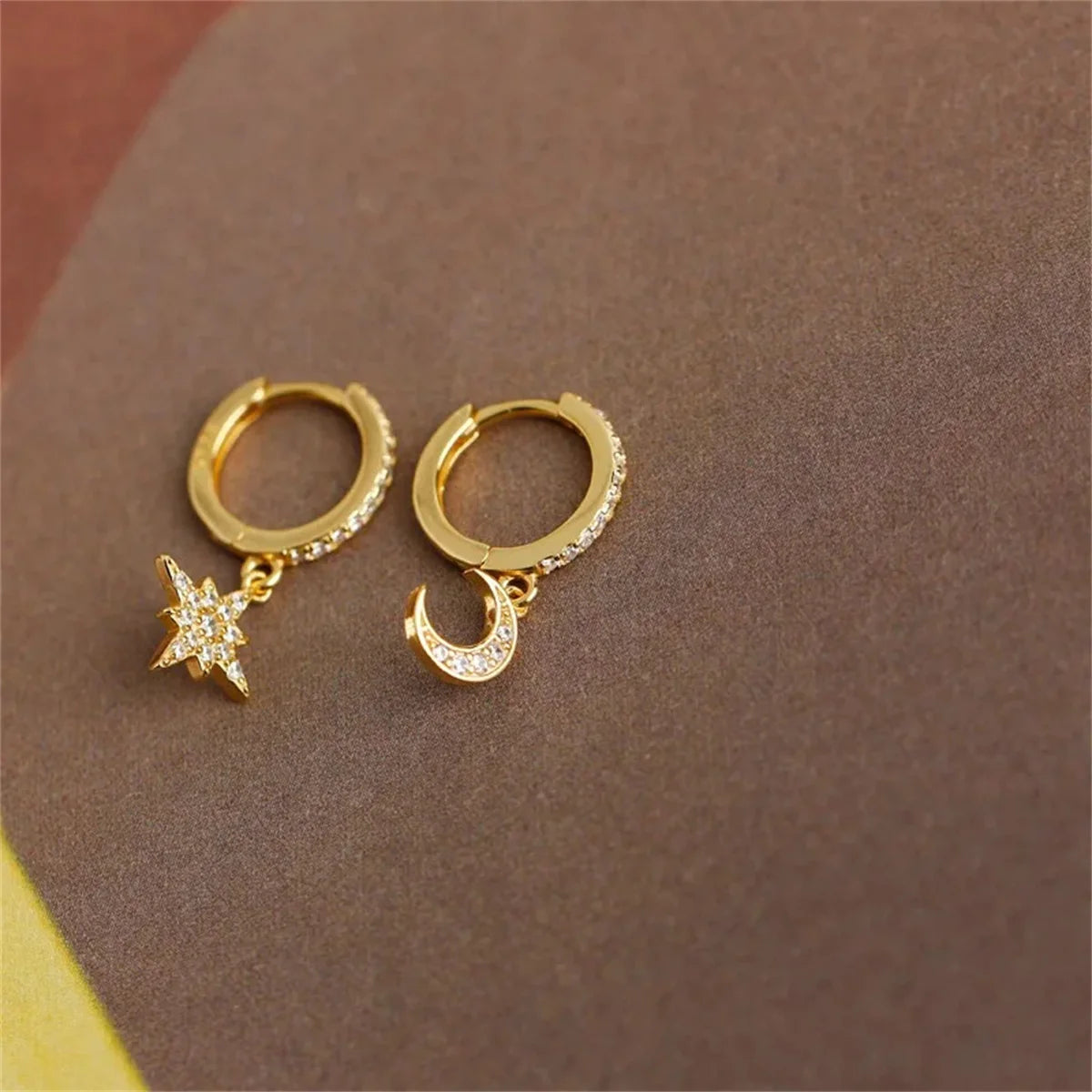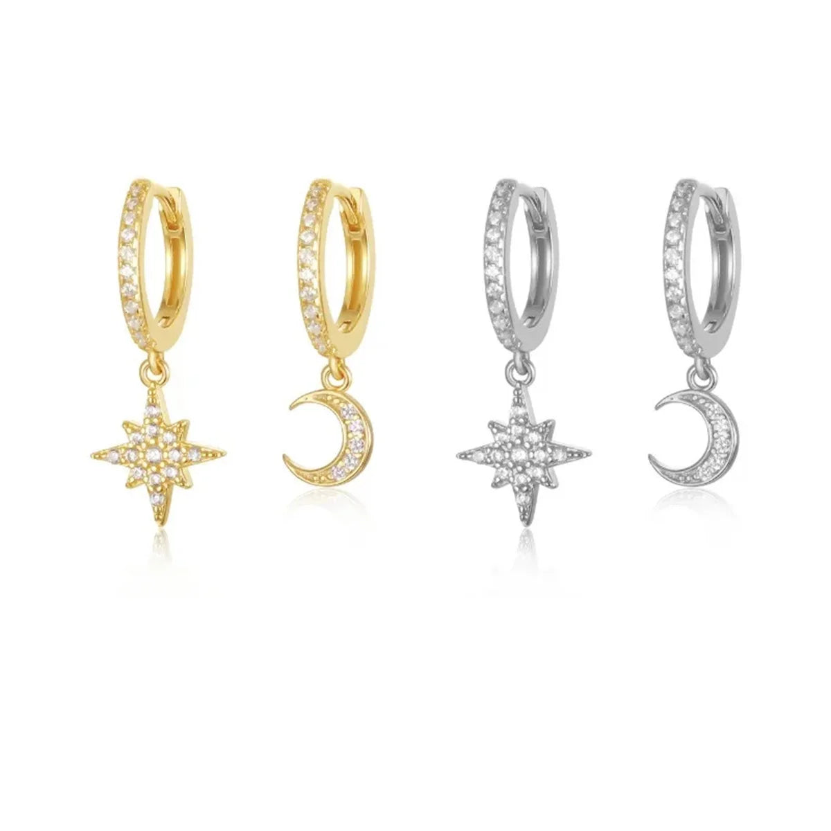 2Pcs Fashion Stainless Steel Star and Moon Pendant Earrings,Cubic Zirconia Cartilage Earring Hypoallergenicity Piercing Jewelry