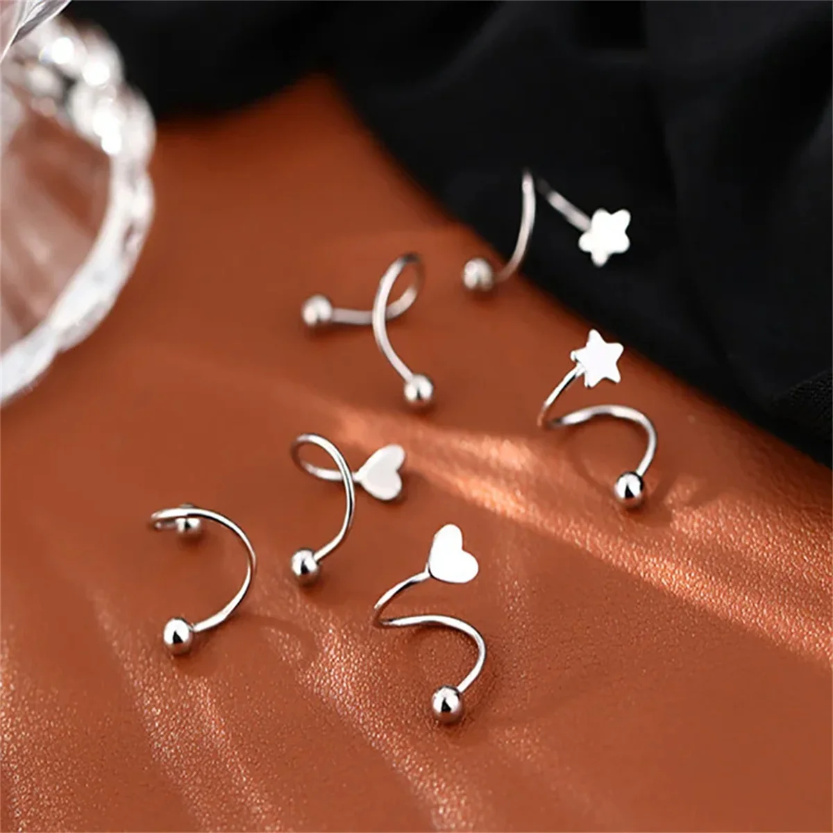 2pcs Stainless Steel Twist Love Heart Star Stud Earrings,S Shape Hypoallergenic Daith Helix Ear Cartilage Tragus Piercing Jewelry