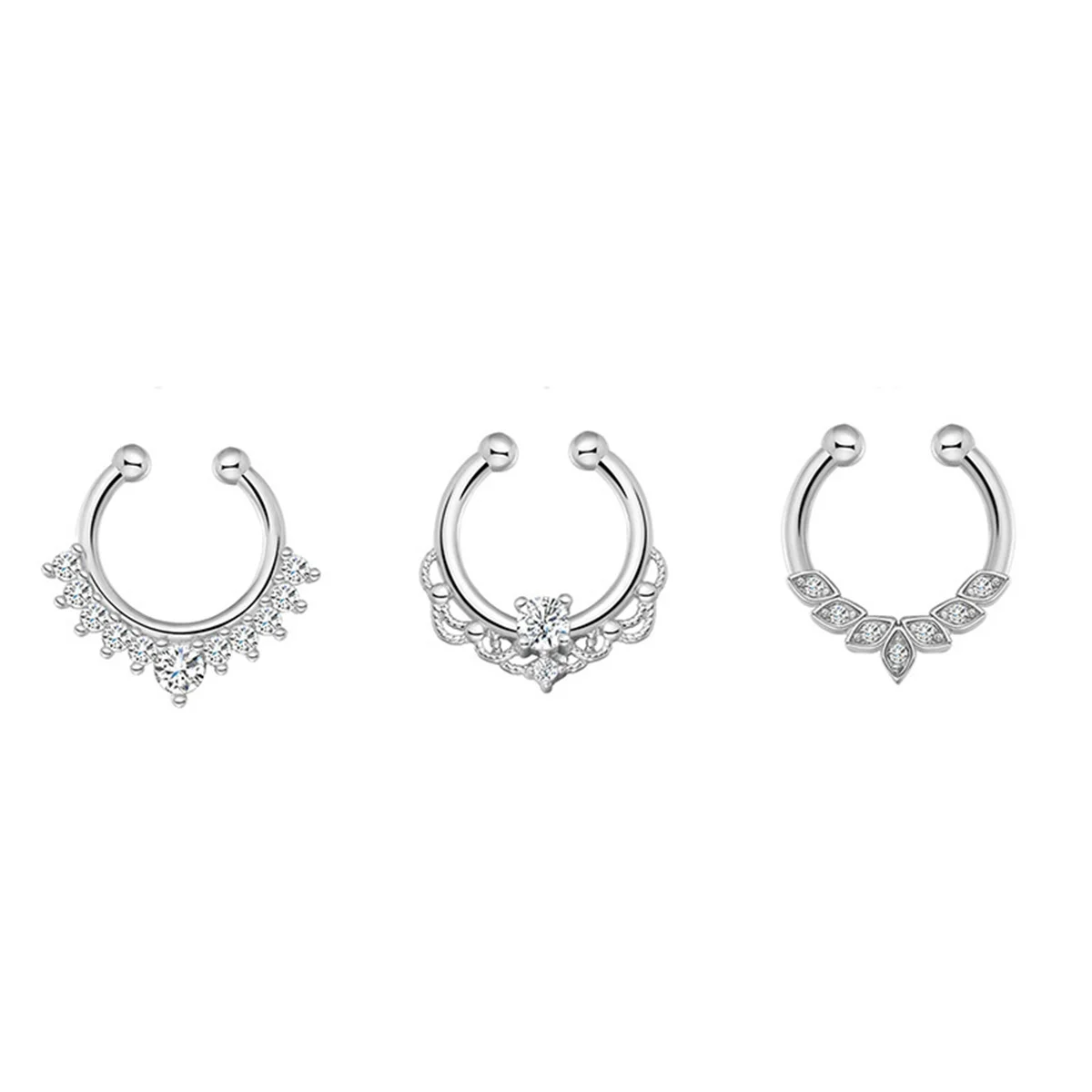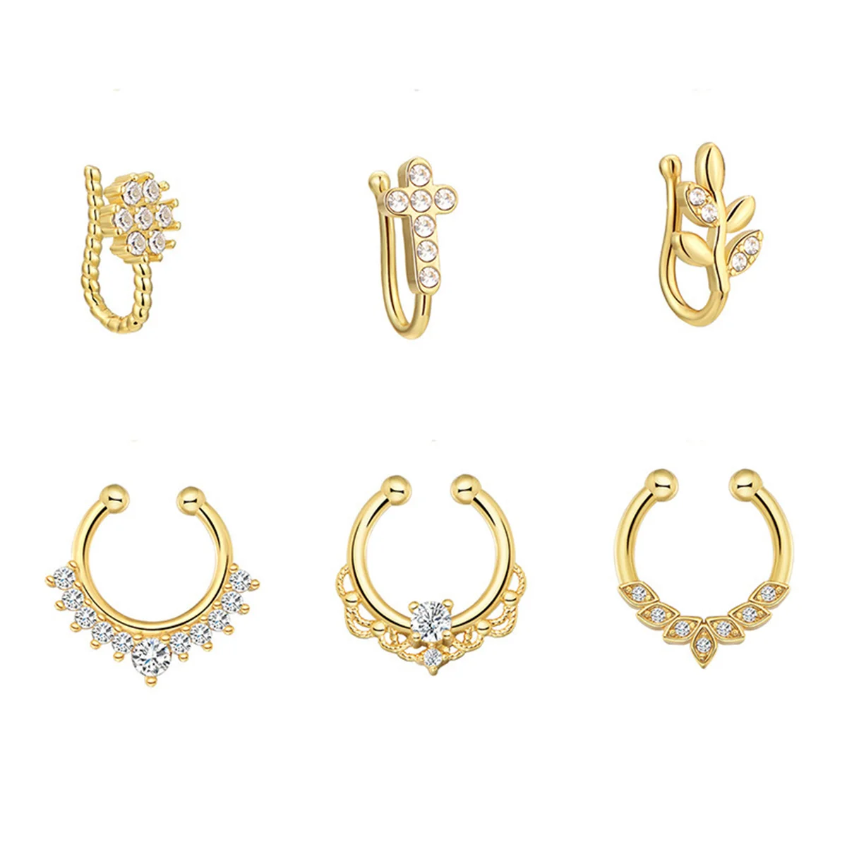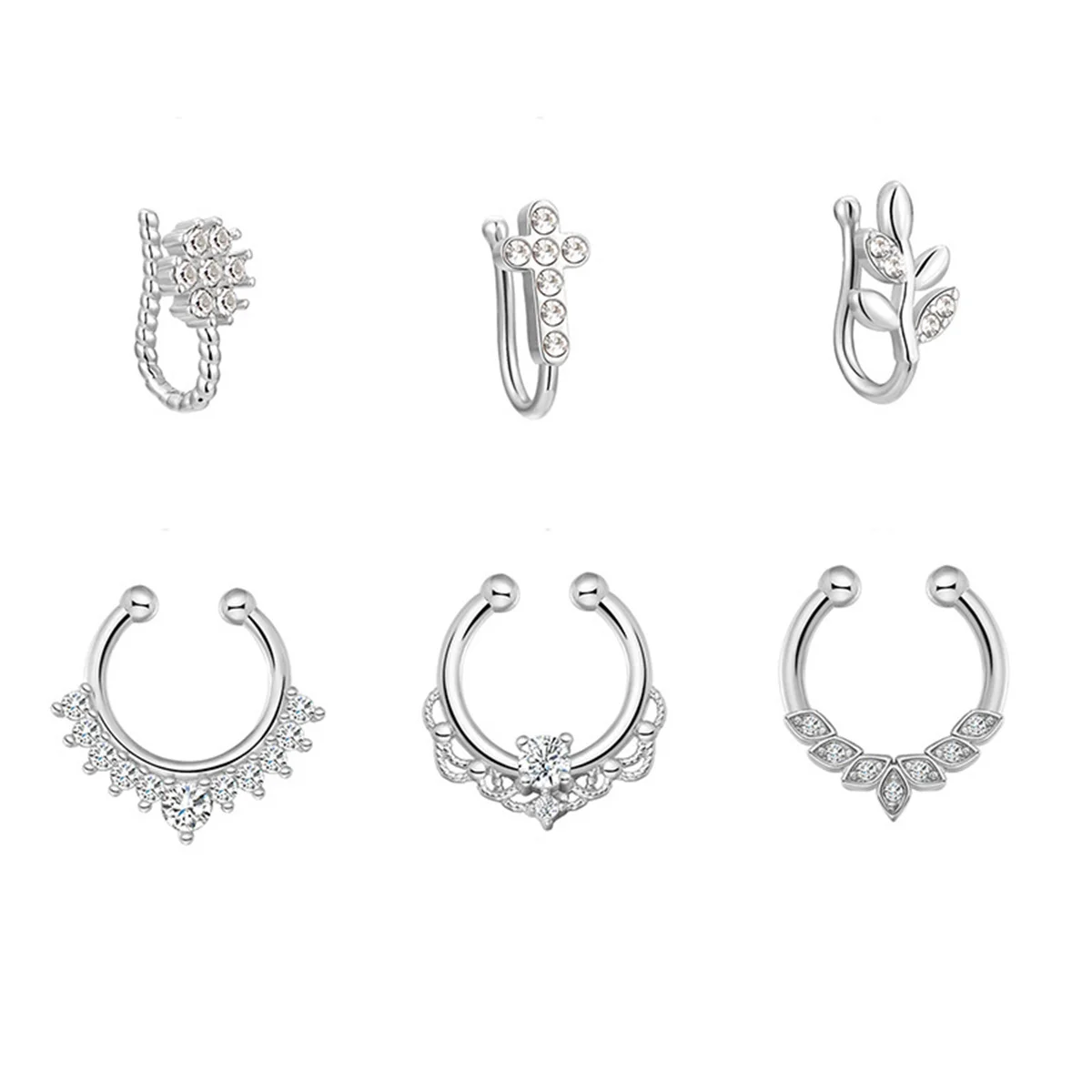 3/6pcs 16G 316L Stainless Steel Bat Fake Septum Ring,Non-Pierced Fake Nose Rings Clip On Nose Hoop Faux Septum Piercing Jewelry