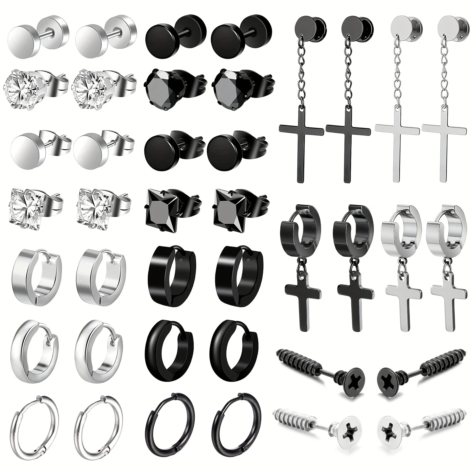 40Pcs Fashion Retro Stainless Steel Earring Set,Cubic Zirconia Tragus Spiral Ear Cartilage Hypoallergenic Piercing Jewelry