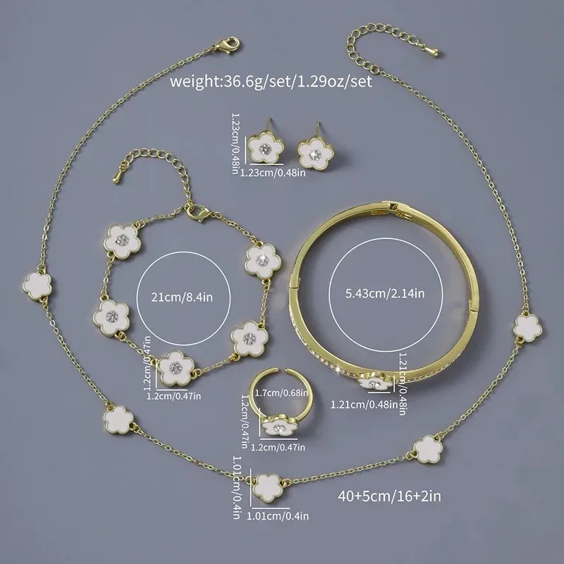Name: 4Pcs High Quality Five Leaf Flower Botanical Jewelry Set Bracelet Necklace Earrings Bnagles Classic for Women Jewelry Clover