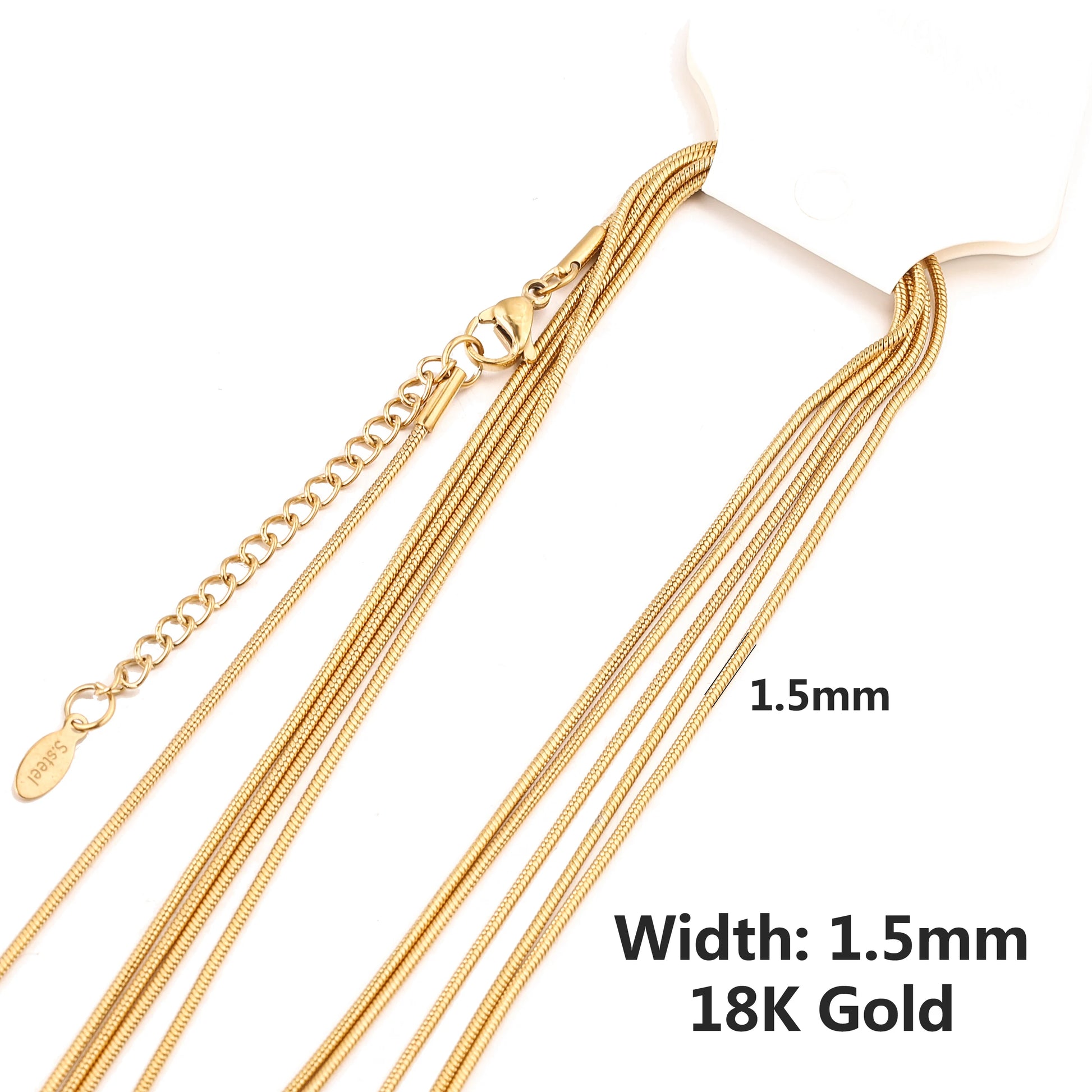 5pcs Wholesale 0.9/1.2/1.5mm Plated 18K Gold Snake Round Chain Necklace for Men Women Silver Necklaces Fashion DIY Jewelry