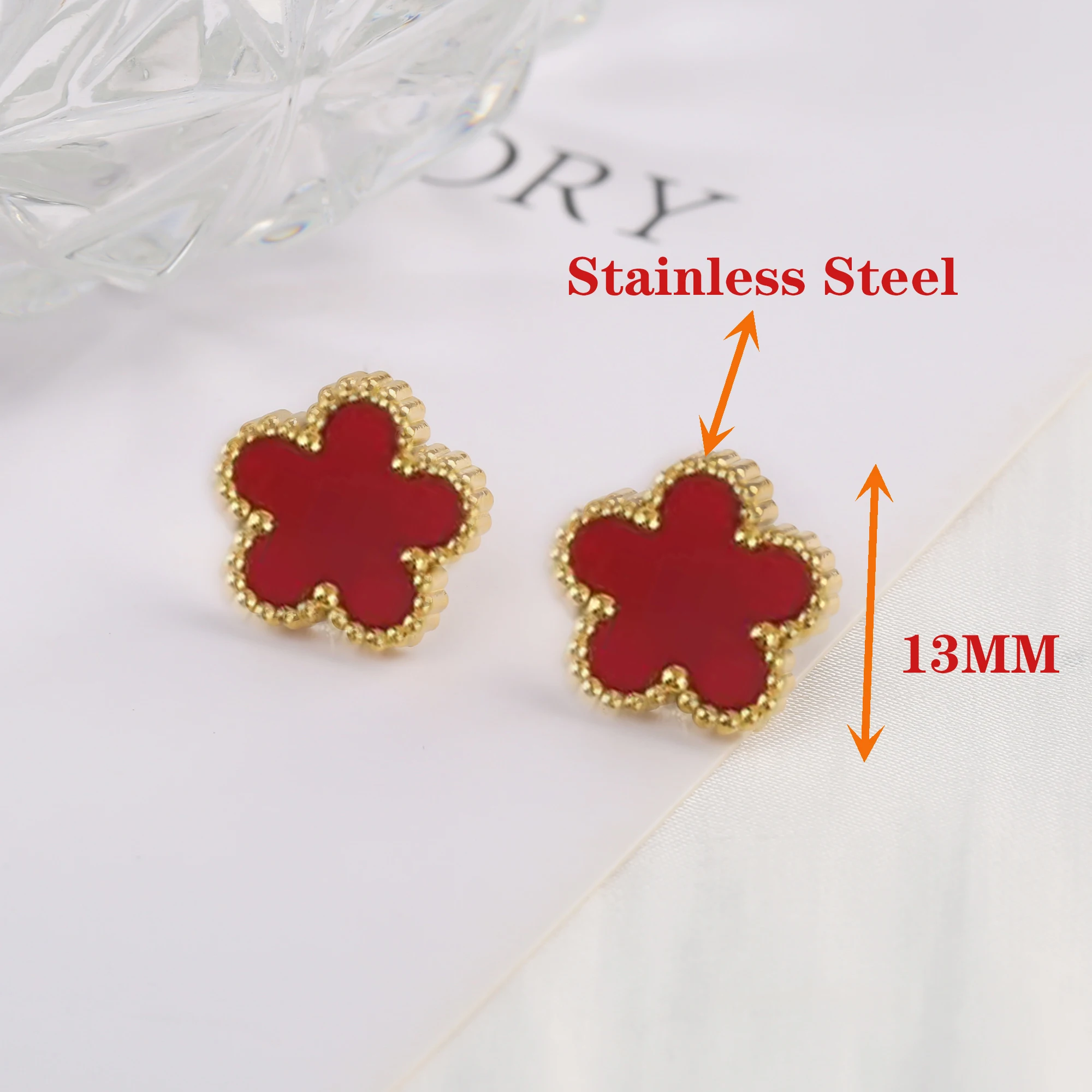 6 Colors Simple Botanical Five Leaf Flower Stainless Steel Stud Earring Classic for Woman Party Jewelry Accessories Clover
