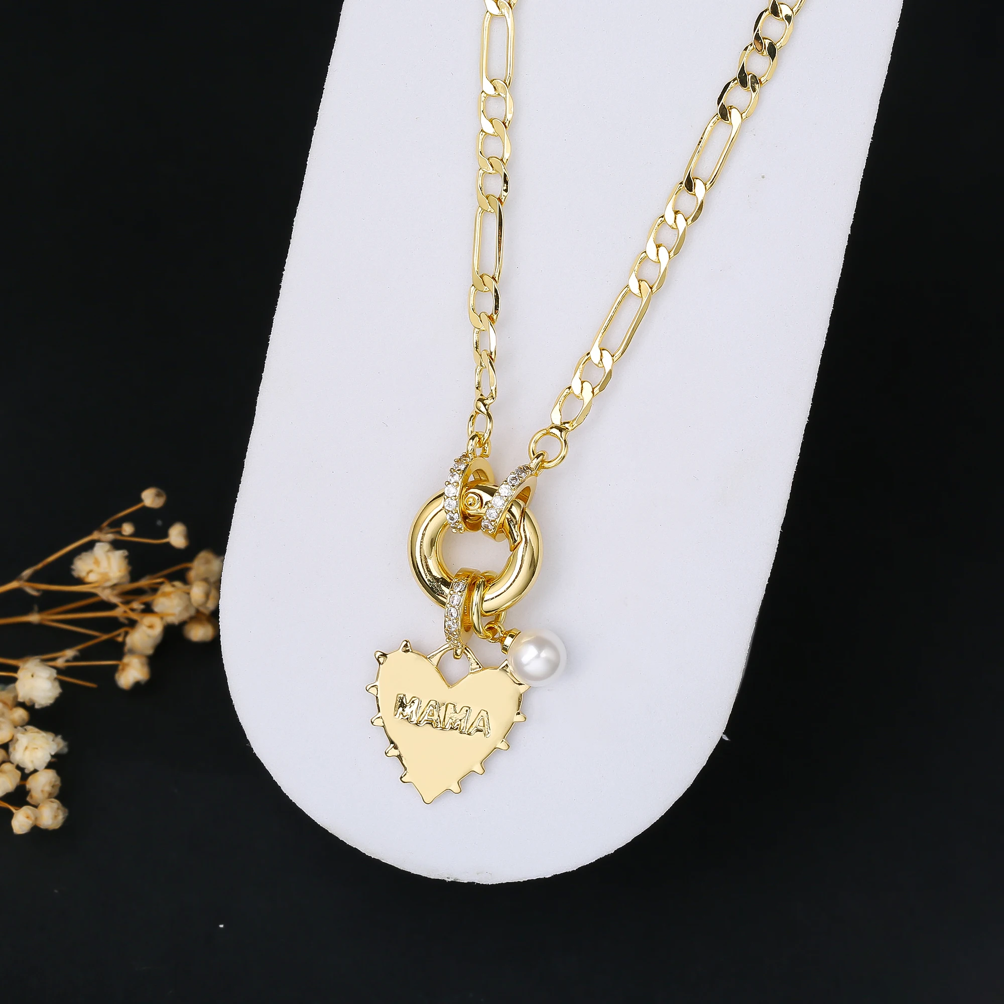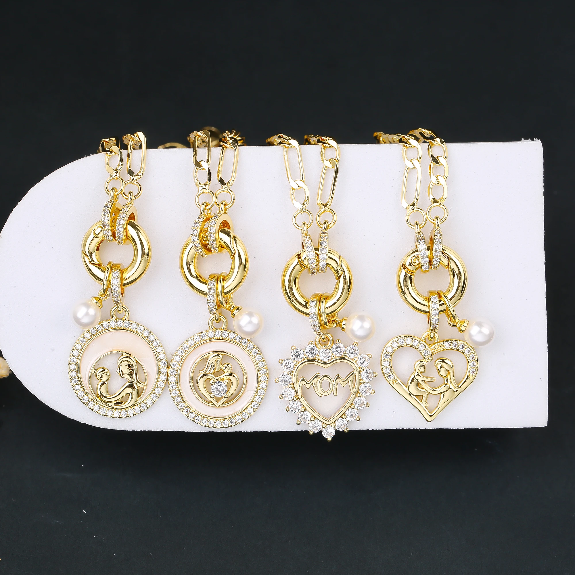Name: 6 Style Mother's Day Gift Heart Shape Mom Pendant Gold Plated Necklace Classic for Woman Party Birthday Aesthetic Jewelry Gift