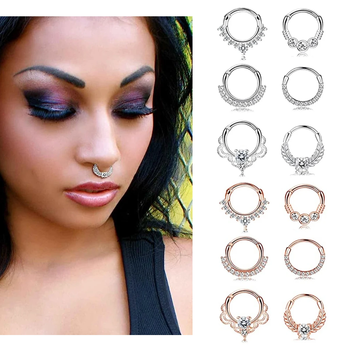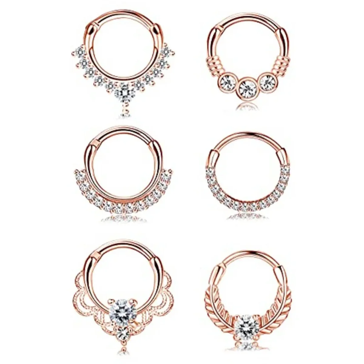6Pcs 16G Fashion Stainless Steel Septum Clicker Nose Rings,Cartilage Tragus Helix Daith Earring Hypoallergenic Piercing Jewelry