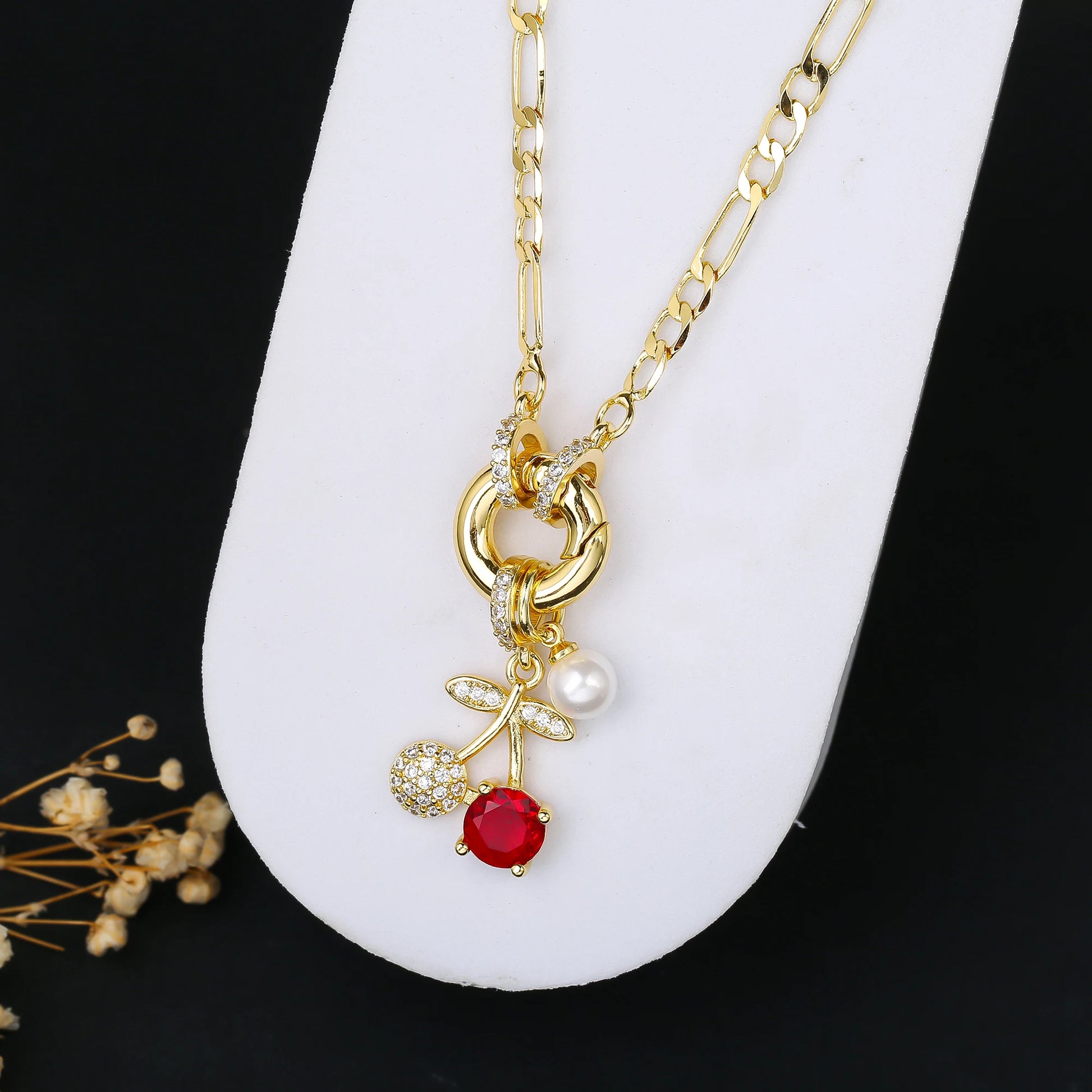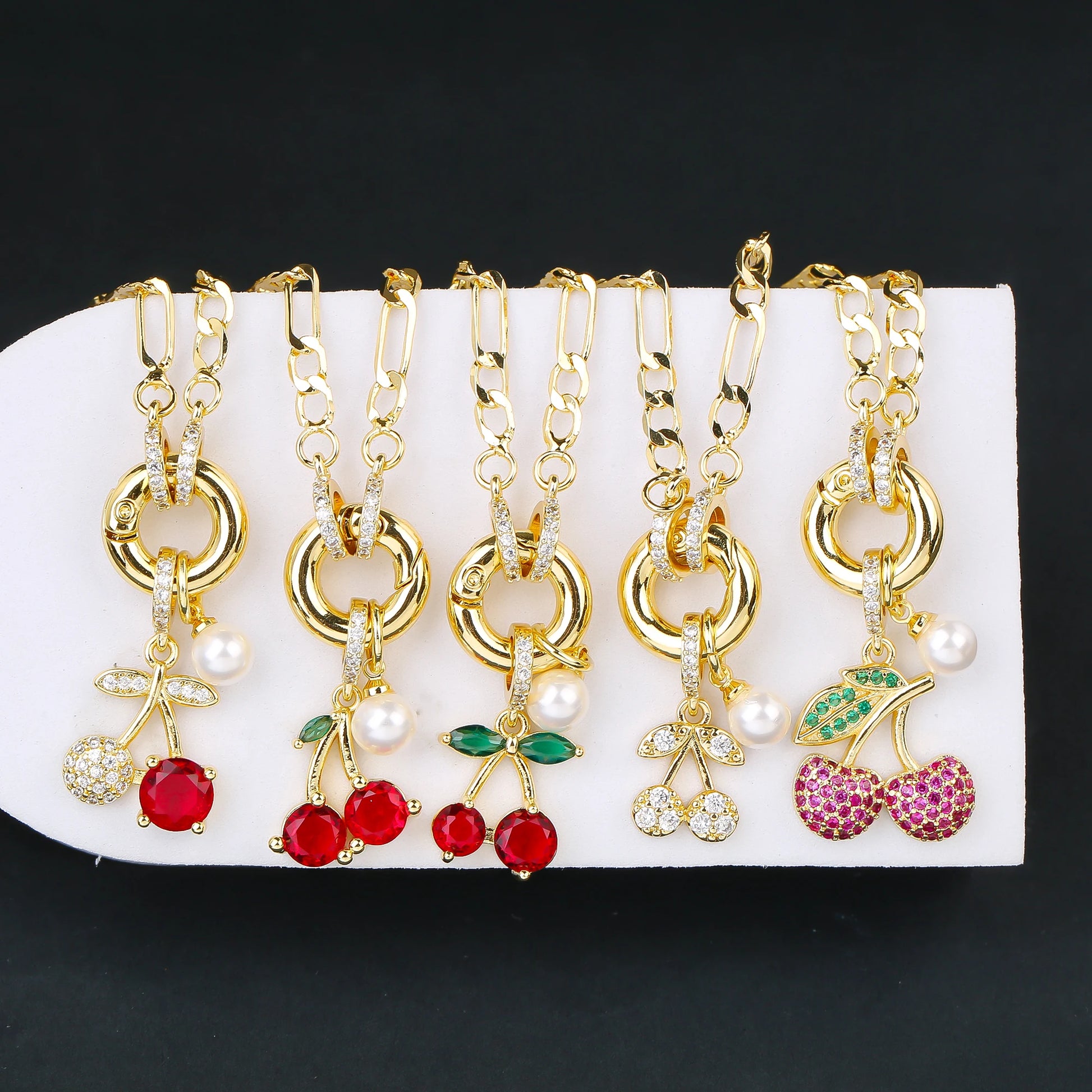 9 Color Fruit Cherry Strawberry Crystal Pendant Necklace 3:1 Chain Jewelry Lucky for Woman Casual Holiday Aesthetic Jewelry Gift