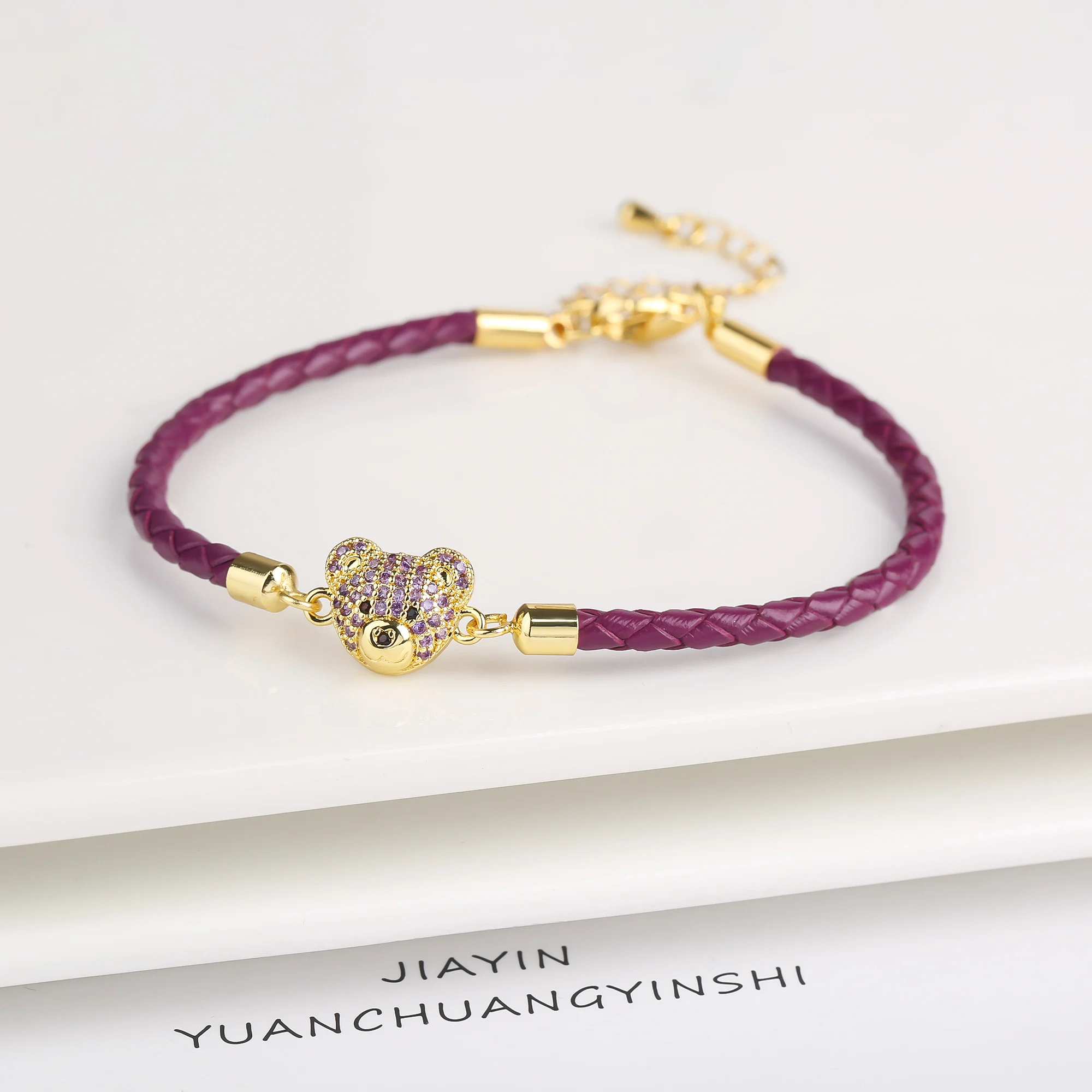 Name: Adjustable Leather Braided Zirconia Bear Bracelet Classic Woman Animal Bracelet Fashion for Party Jewelry Gift Accessories