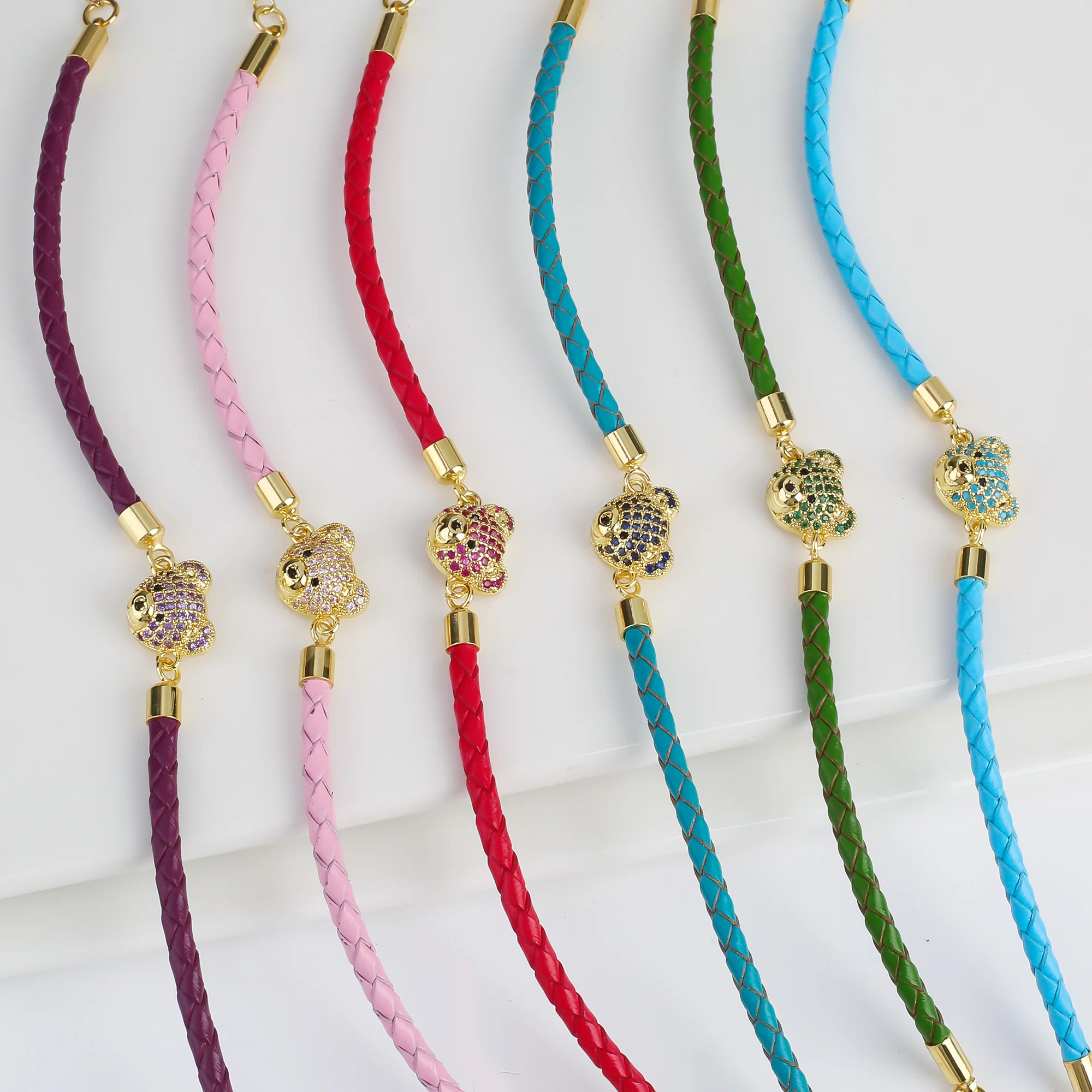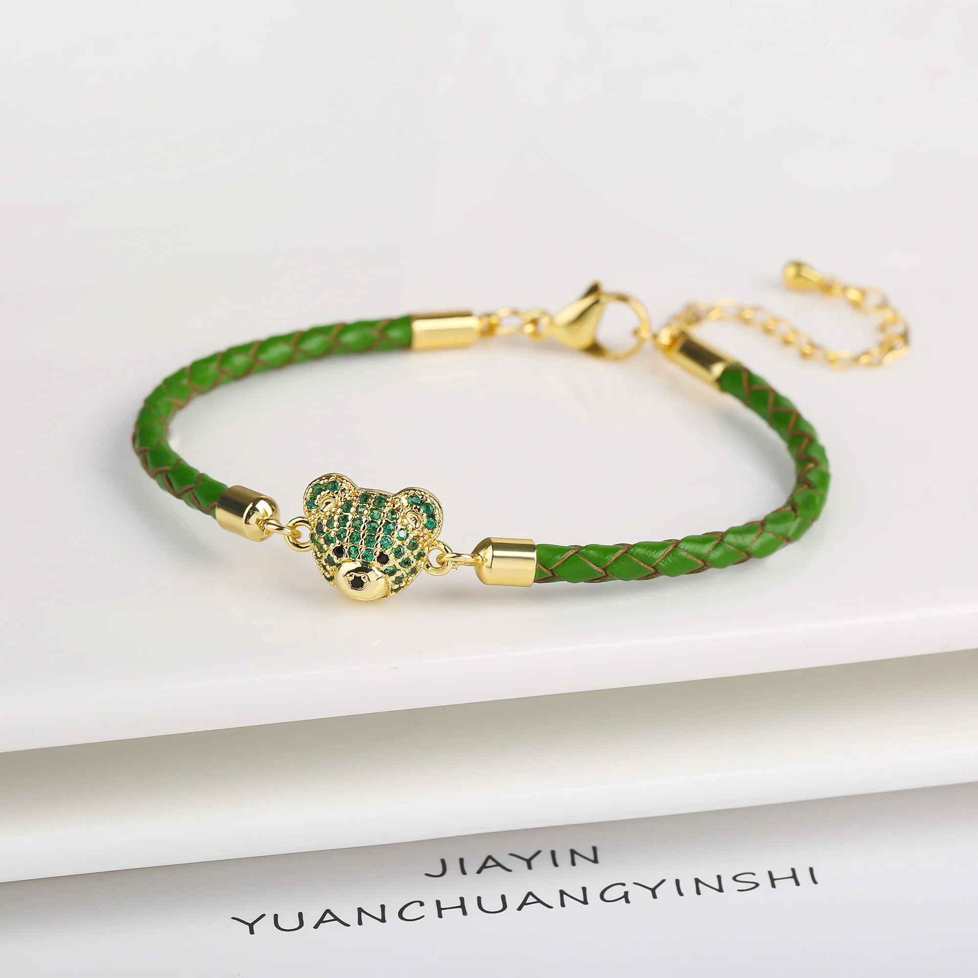 Adjustable Leather Braided Zirconia Bear Bracelet Classic Woman Animal Bracelet Fashion for Party Jewelry Gift Accessories