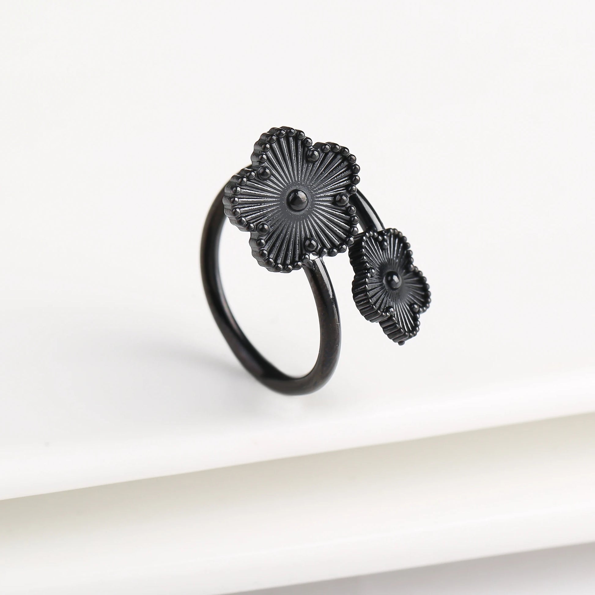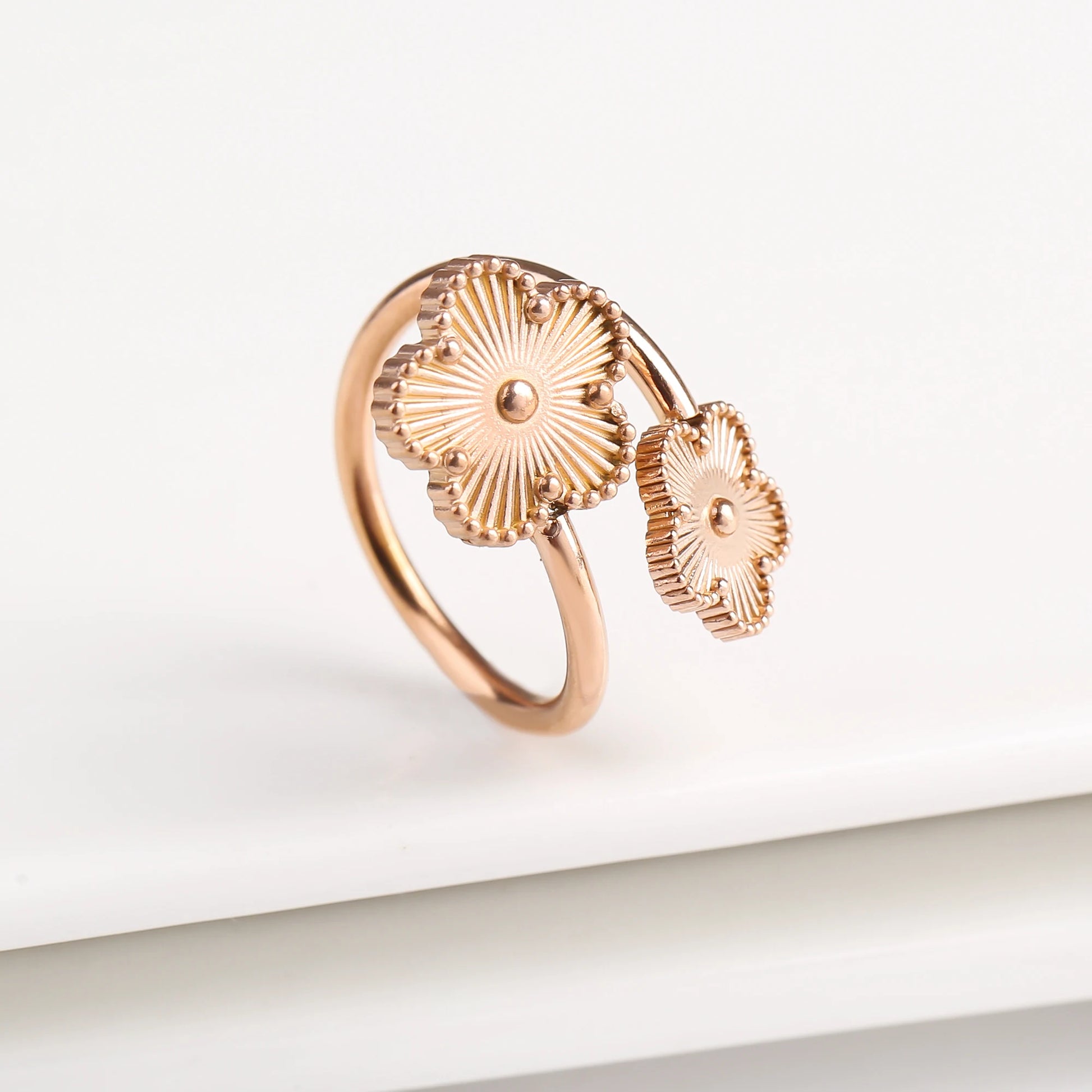 Name: Classic Luxury Clover Metal Laser Stainless Steel Five Leaf Flower Open Ring Simple for Woman Girl New Fashion Party Jewelry