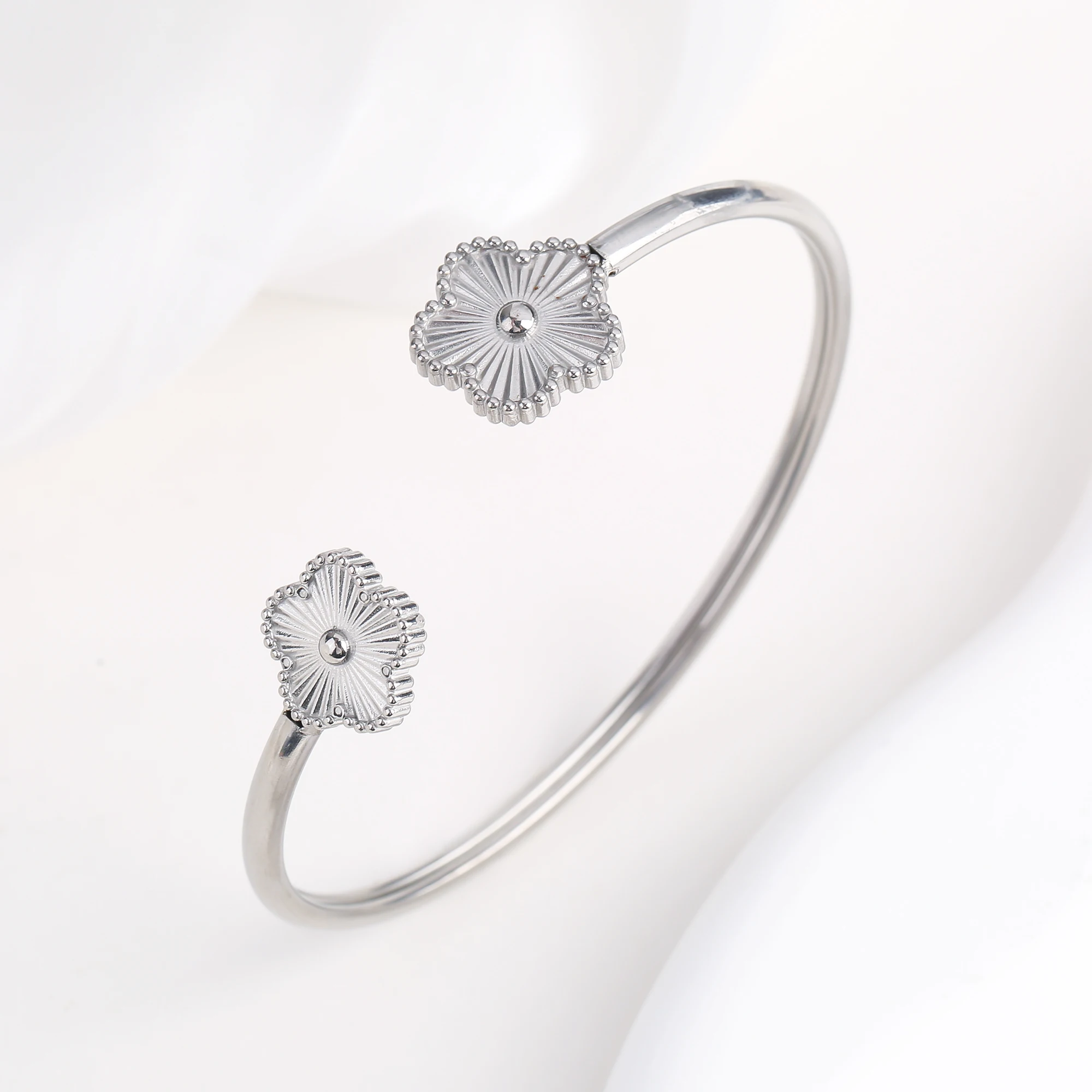 Classic Luxury Stainless Steel Five-Leaf Flower Open Bracelet Simple For Woman Girl New Fashion Party Anniversary Jewelry Clover