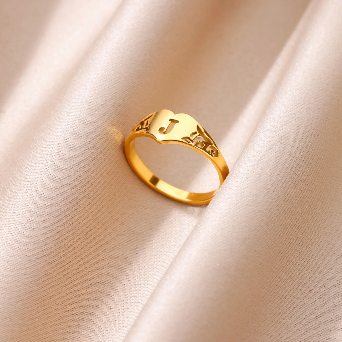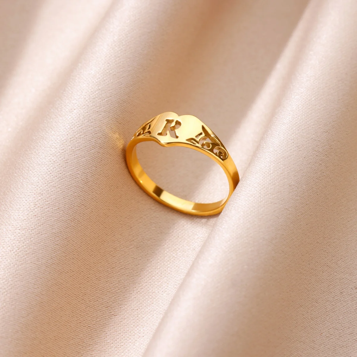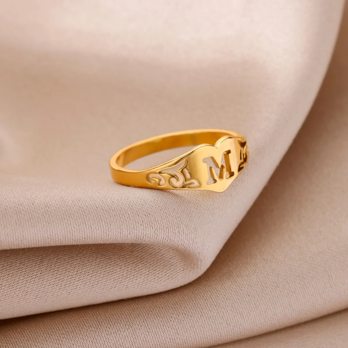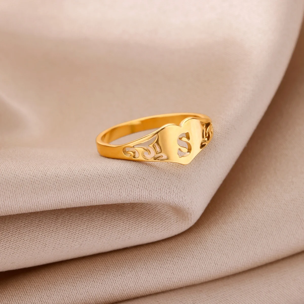 Fashion Hollow Initial Letter Heart Rings For Women Gold Color Stainless Steel A-Z Letter Ring Aesthetic Wedding Jewelry Gift