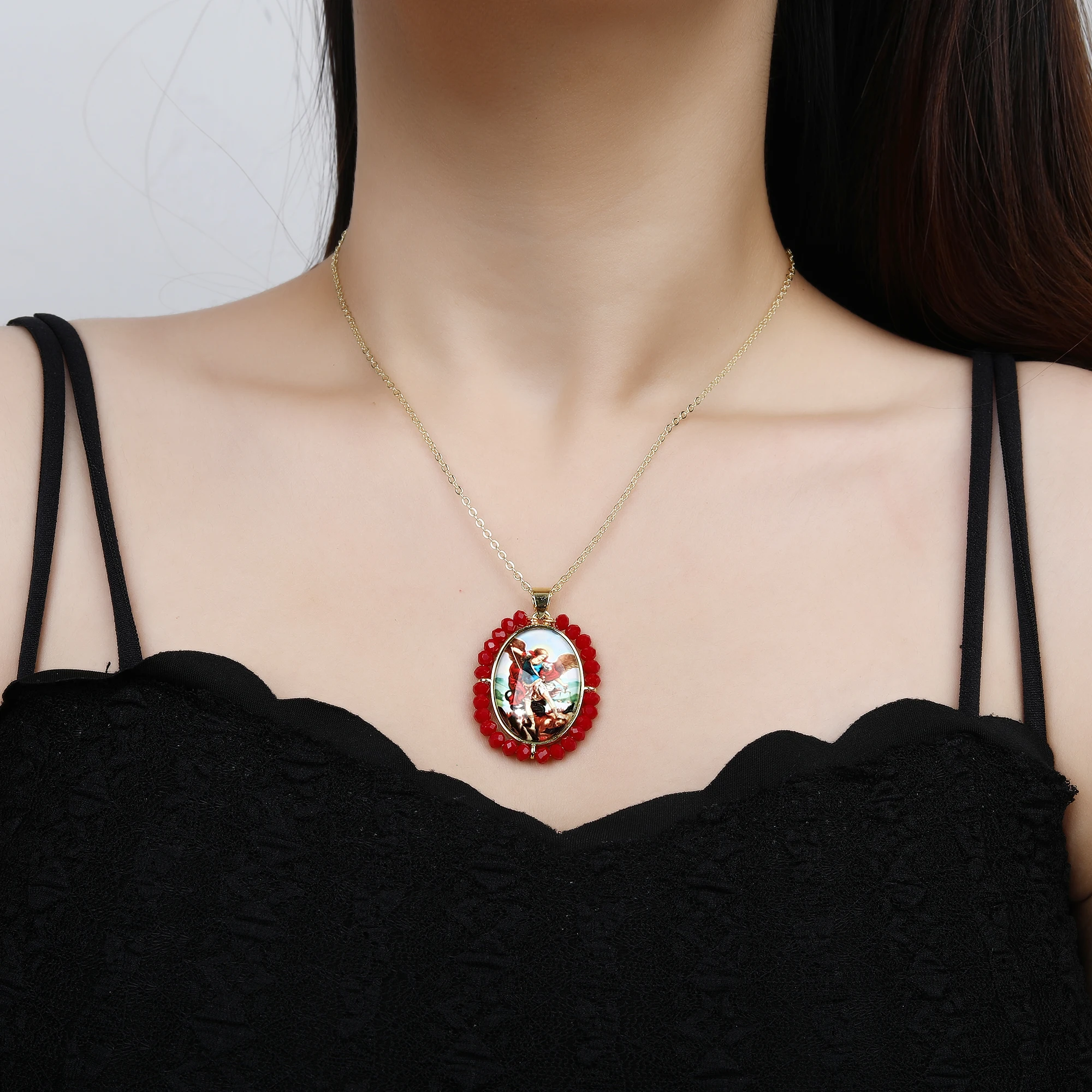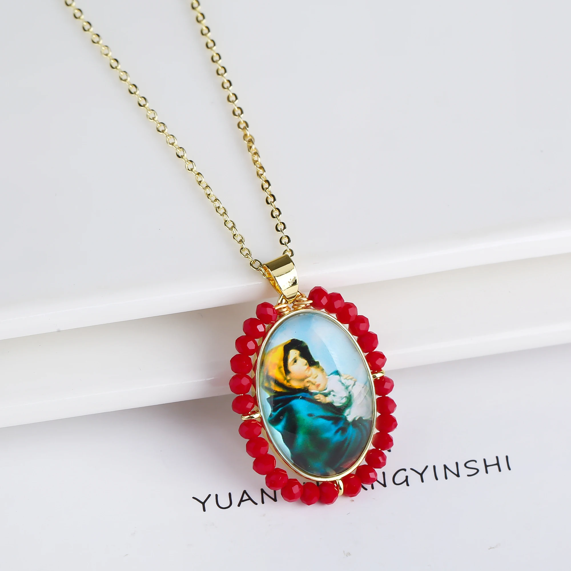 Name: Fashion Shiny Crystal Oval Pendant Necklace High Quality Religious Characters Jewelry Luxury for Man Woman Jewelry Daily Wear