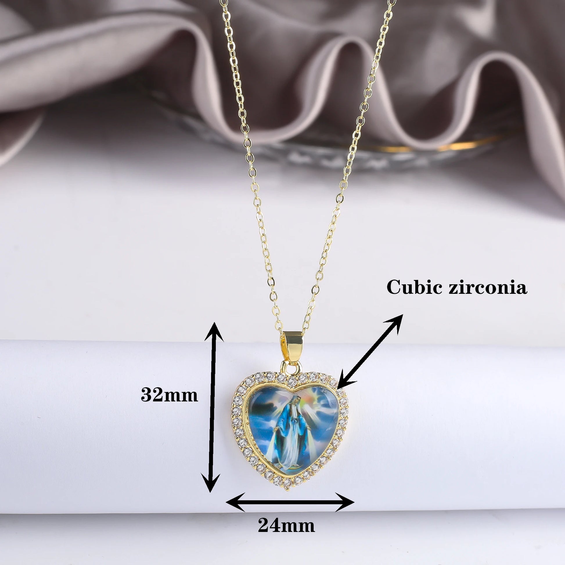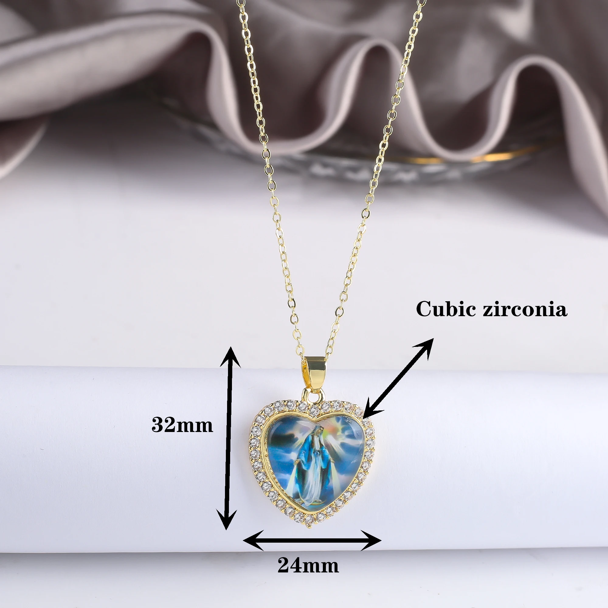 Fine Trendy Heart Shape Religious Figure Virgin Mary Pendant Necklace Fine Holiday Party Catholic Jewelry Gift Wholesale