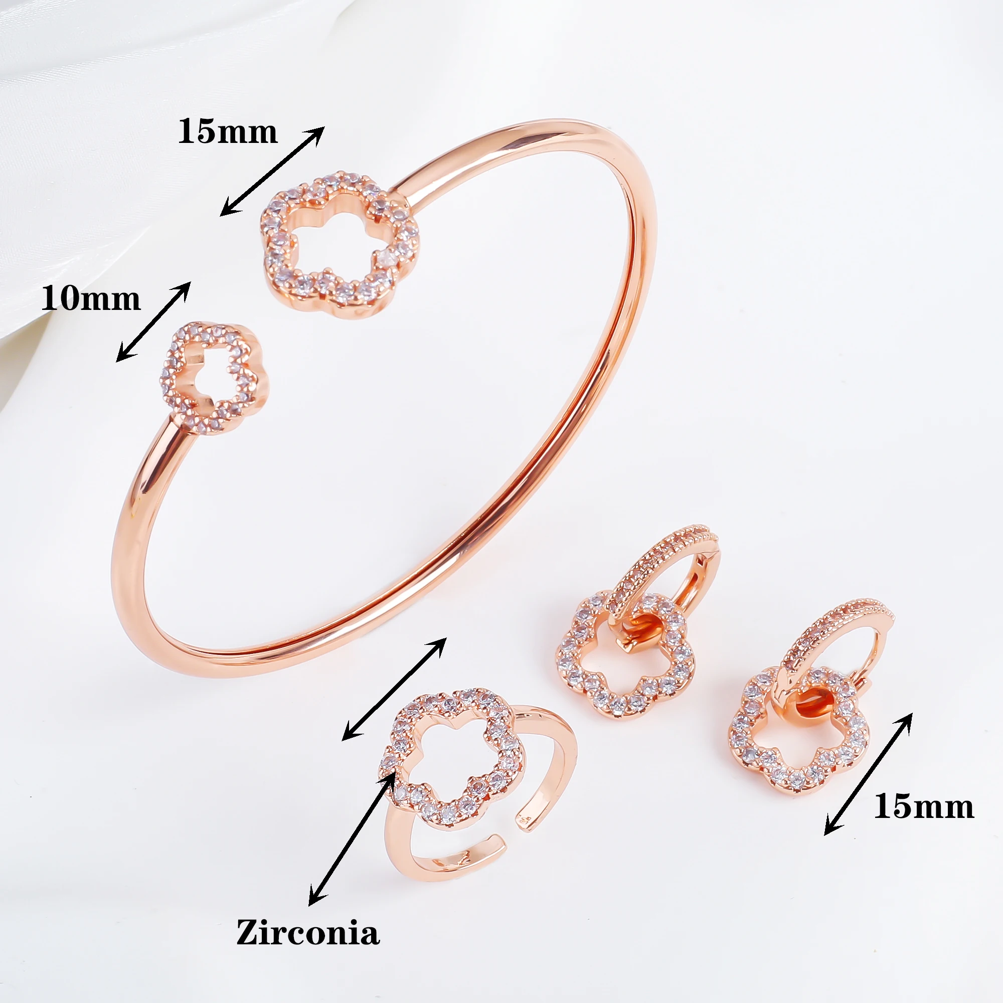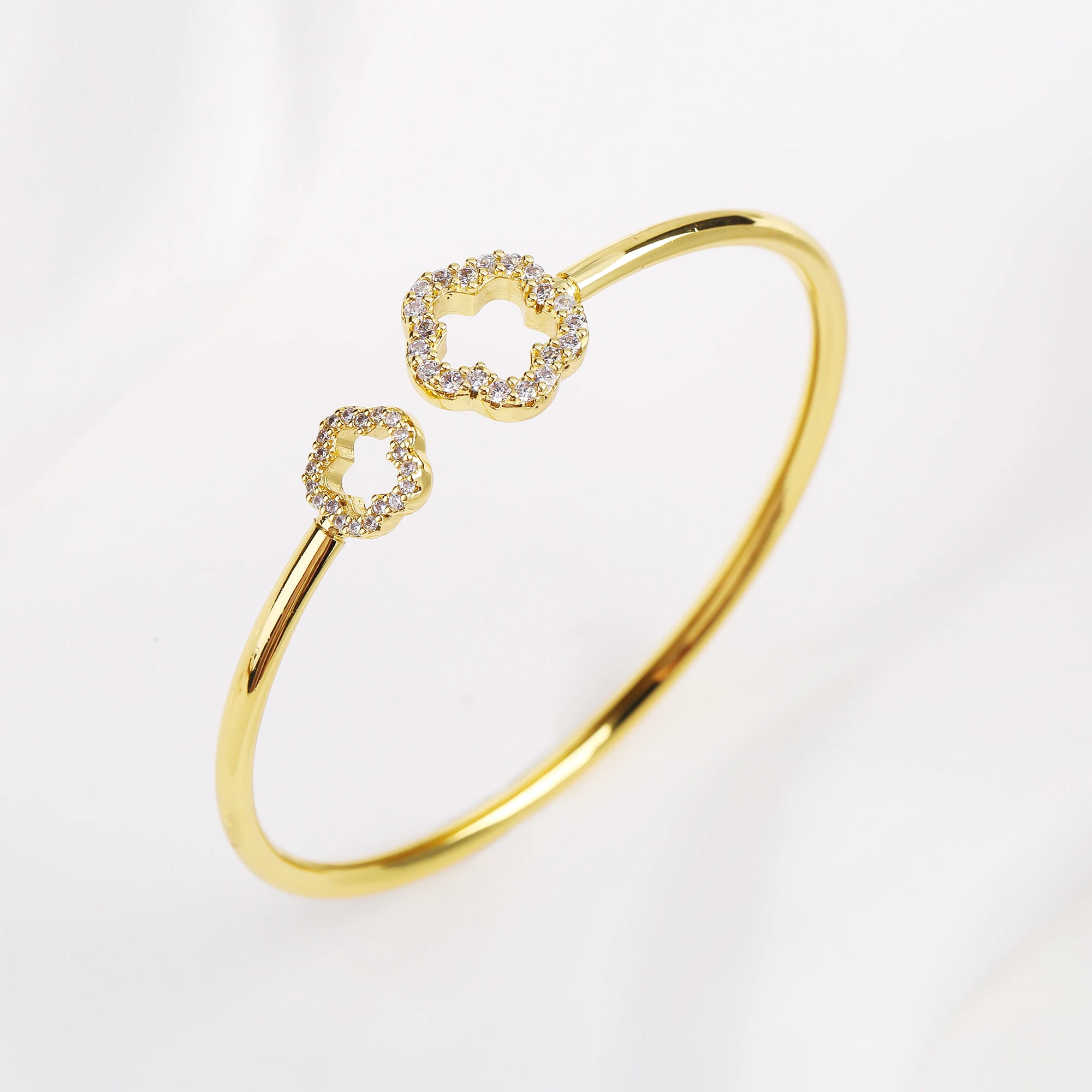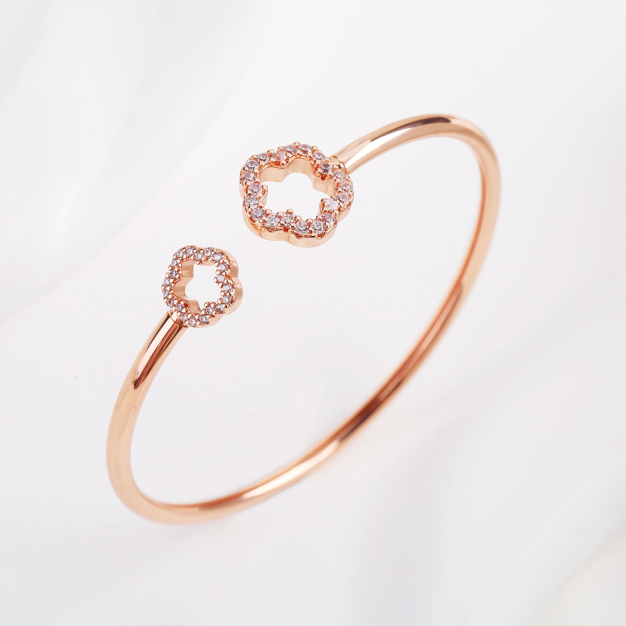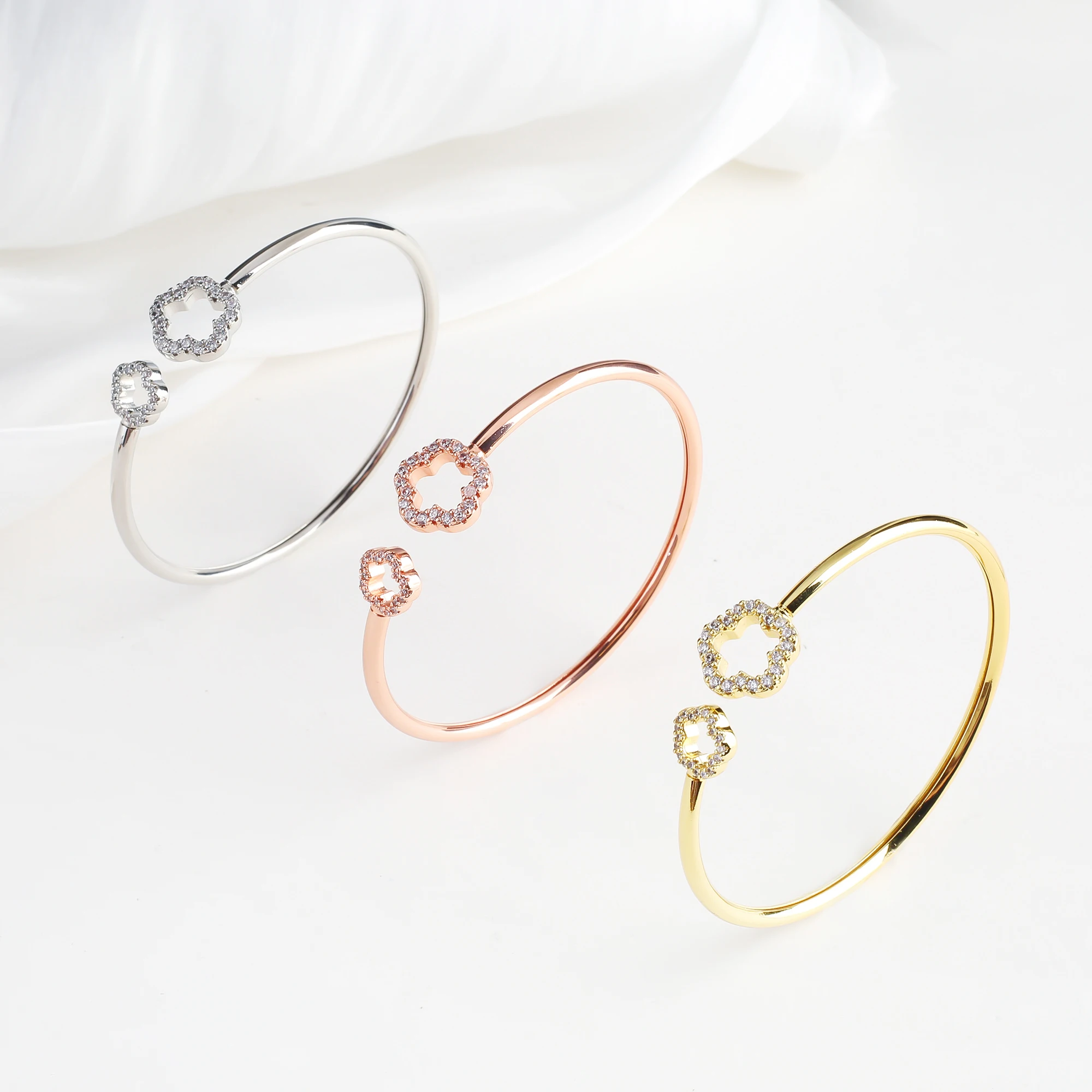 Flower Jewelry Bracelet Shiny Zirconia Hollow Five Leaf Flower Opening Bangle Simple for Woman Girl Party Jewelry Gift Clover