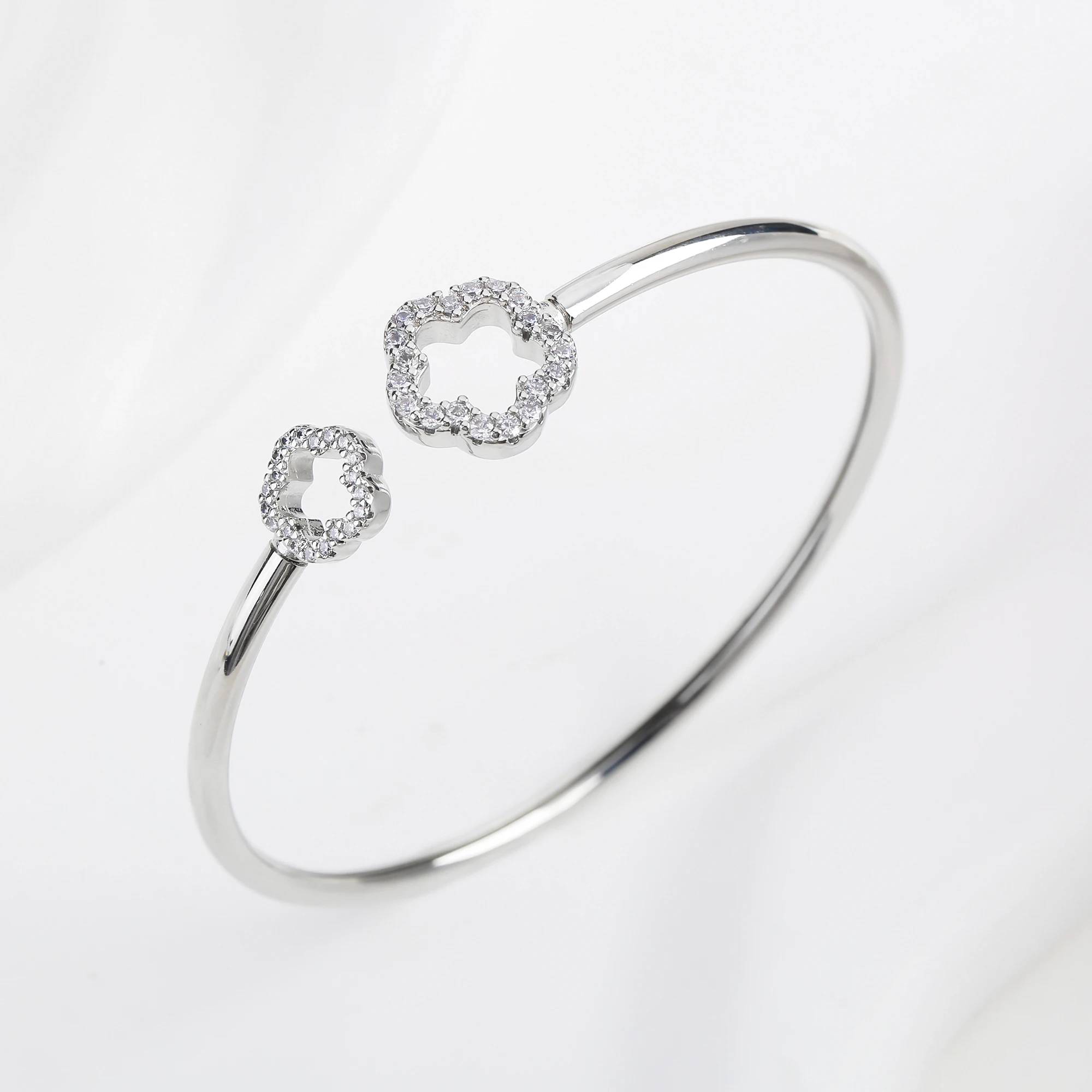 Name: Flower Jewelry Bracelet Shiny Zirconia Hollow Five Leaf Flower Opening Bangle Simple for Woman Girl Party Jewelry Gift Clover