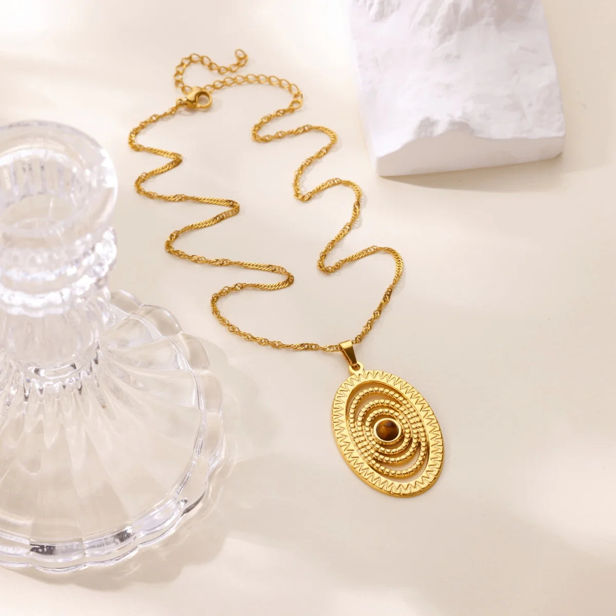 Free Shipping Vintage Hollow Oval Opal Pendant Necklaces For Women Stainless Steel Chain Collar Necklace 2025 New Jewelry
