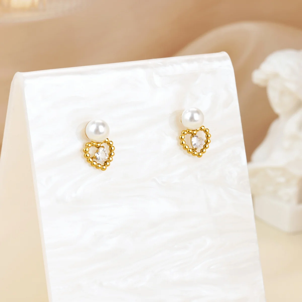 Free Shipping Zircon Heart Stud Earring For Women Imitation Pearl Stainless Steel Piercing Earring Fashion Wedding Jewelry