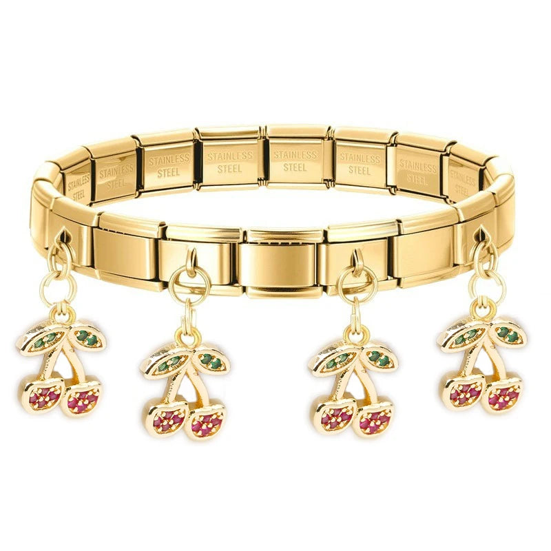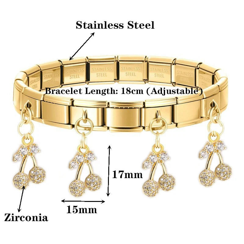 Name: Square Stainless Steel Elastic Strap Bangle Bracelets for Women Female Zirconia Cherry Pendant Bracelets Hand Fruit Jewelry Gift