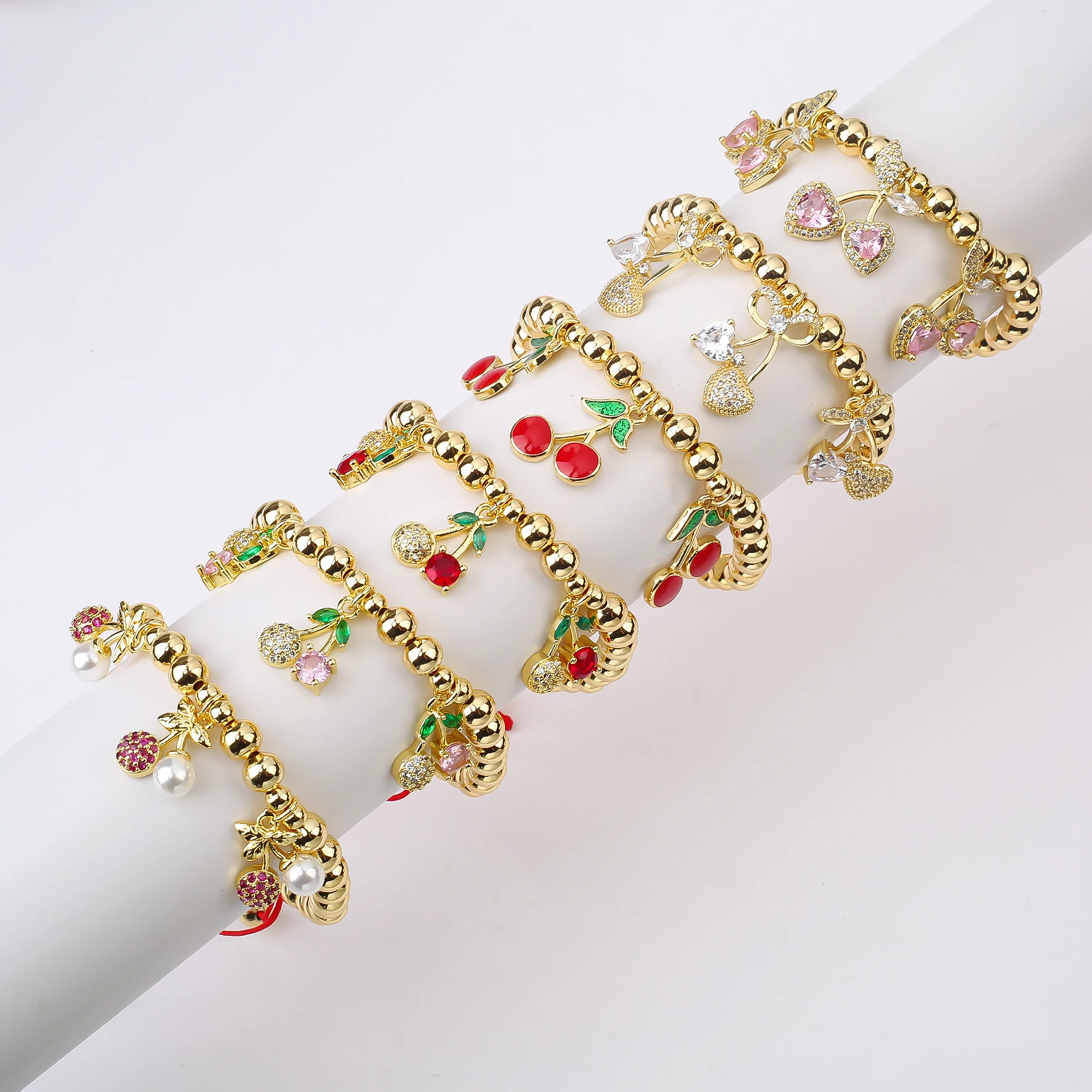 Name: Gold Plated 6mm Copper Bead Chain Braided Fruit Cherry Crystal Adjustable Bracelet New Fashion Woman Girl Daily Wear Jewelry