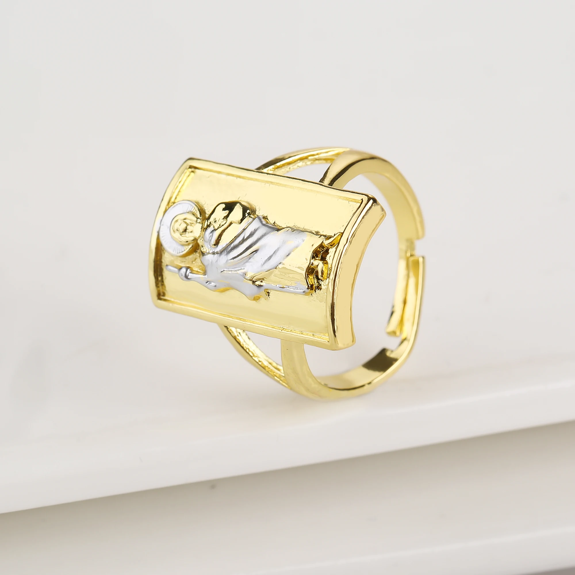 Name: Gold Plated Classic Religious Character St. Jude Adjustable Ring Fashion for Man Woman Party Wedding Jewelry Gift Daily Wear