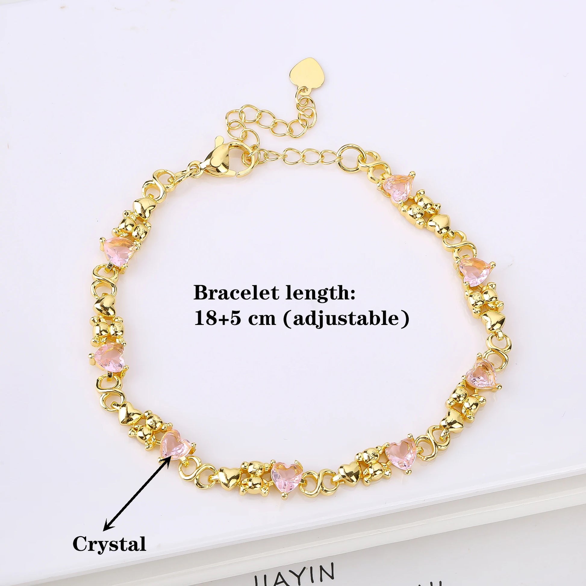 Name: Gold-plated Heart Shape Crystal Cute Animal Bear Adjustable Bracelet Luxury for Women Girls New Fashion Party Jewelry Fine Gift