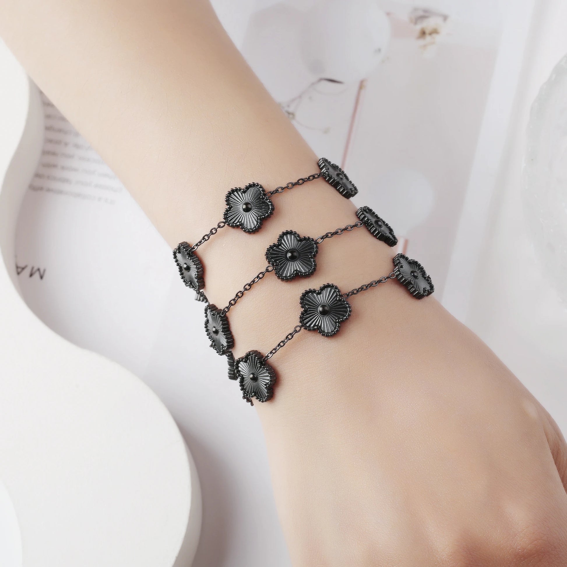 Gold Plated Hot Sale 316L Stainless Steel Plant Five Leaf Flower Bracelet Classic For Woman New Fashion Party Jewelry Clover