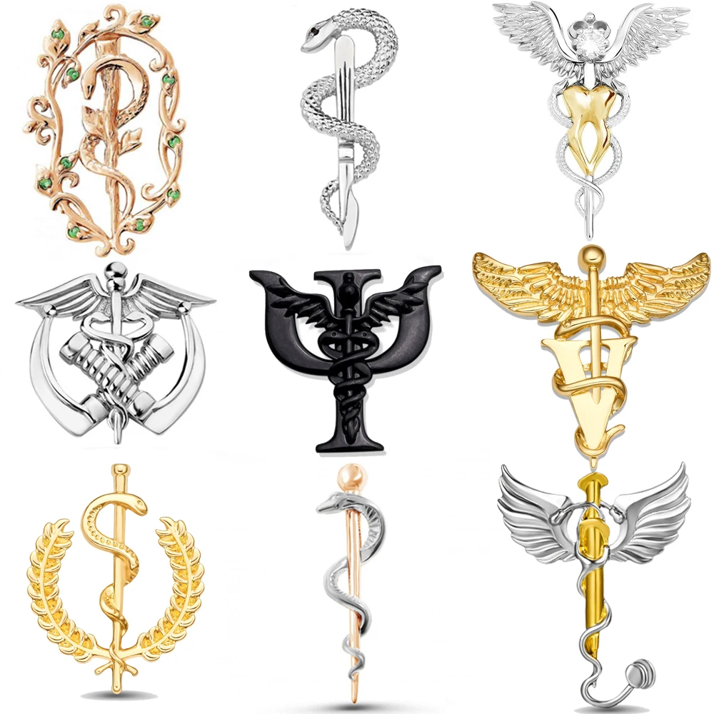 Hanreshe Medical Caduceus Brooch Pin Set Doctor Nurse Lapel Hat Bag Badge Brooches Medicine Psychology Surgery Jewelry Gifts