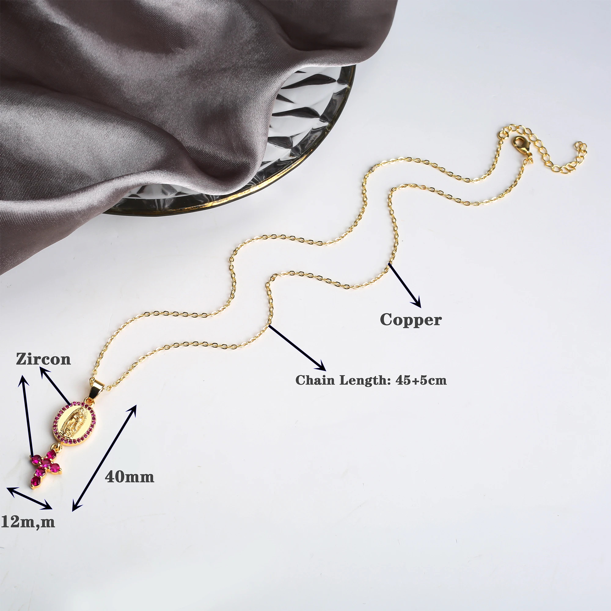 Name: High Quality Bracelet Zirconia Virgin Mary Cross Pendant Necklace Classic for Woman Girl Party Religious Jewelry Accessories