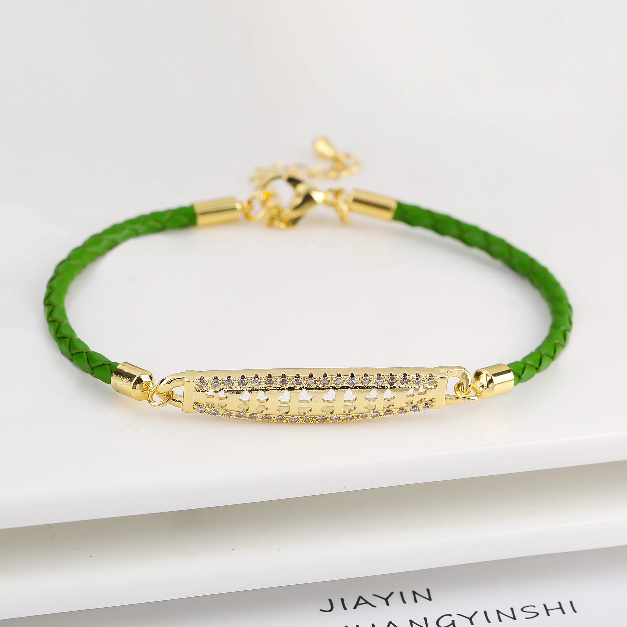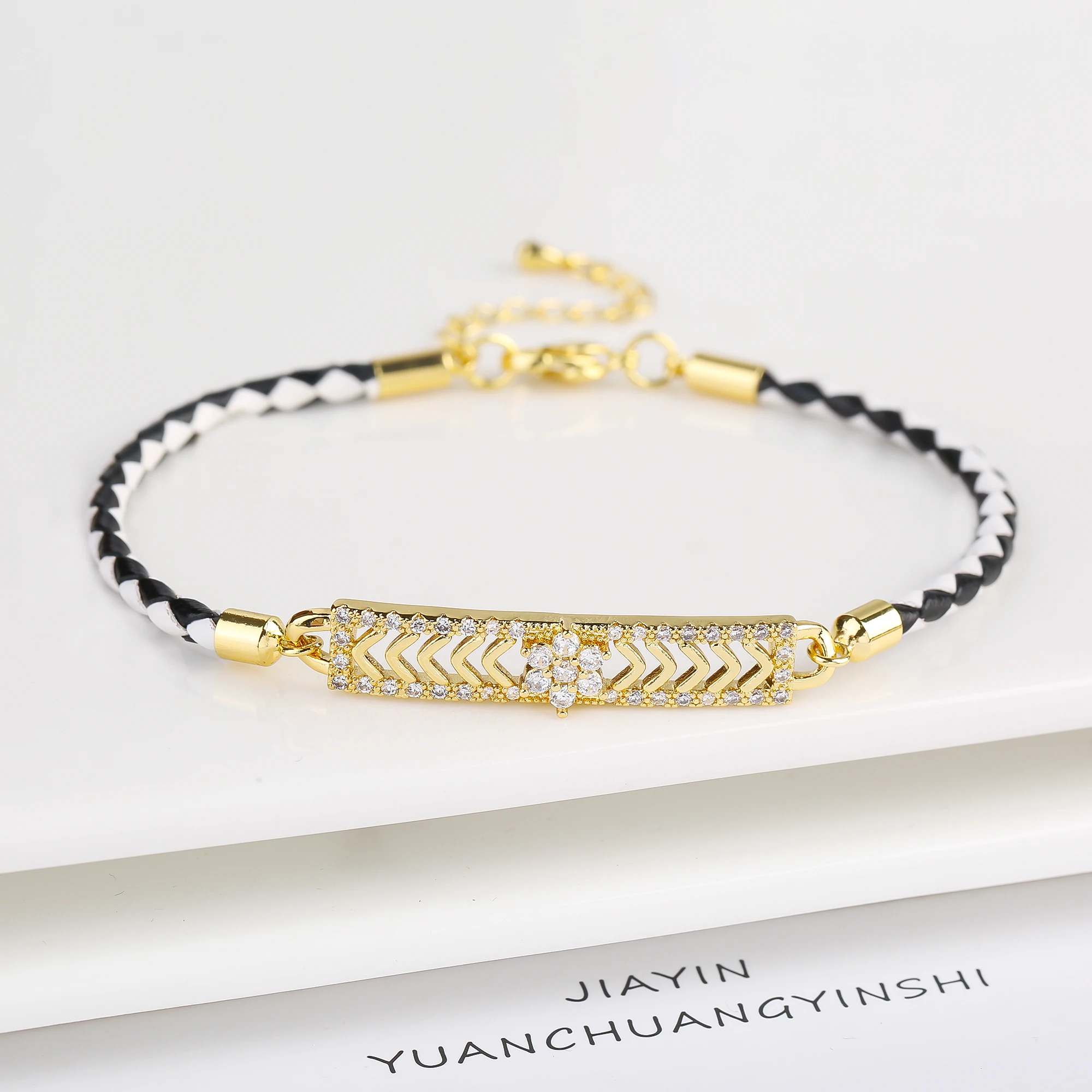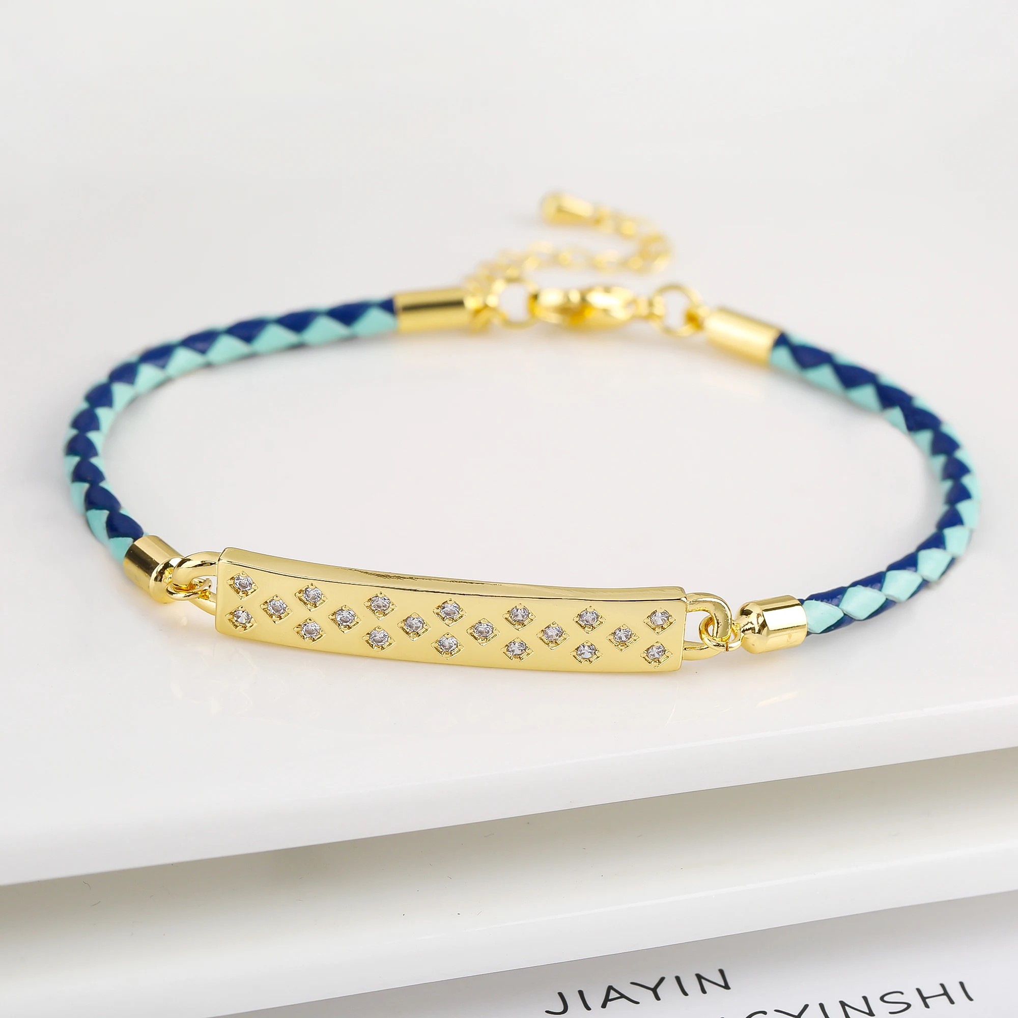 Name: High Quality Cubic Zirconia Rectangle Accessory Leather Rope Bracelet Luxury for Party Wedding Jewelry Fine Gift Dropshipping
