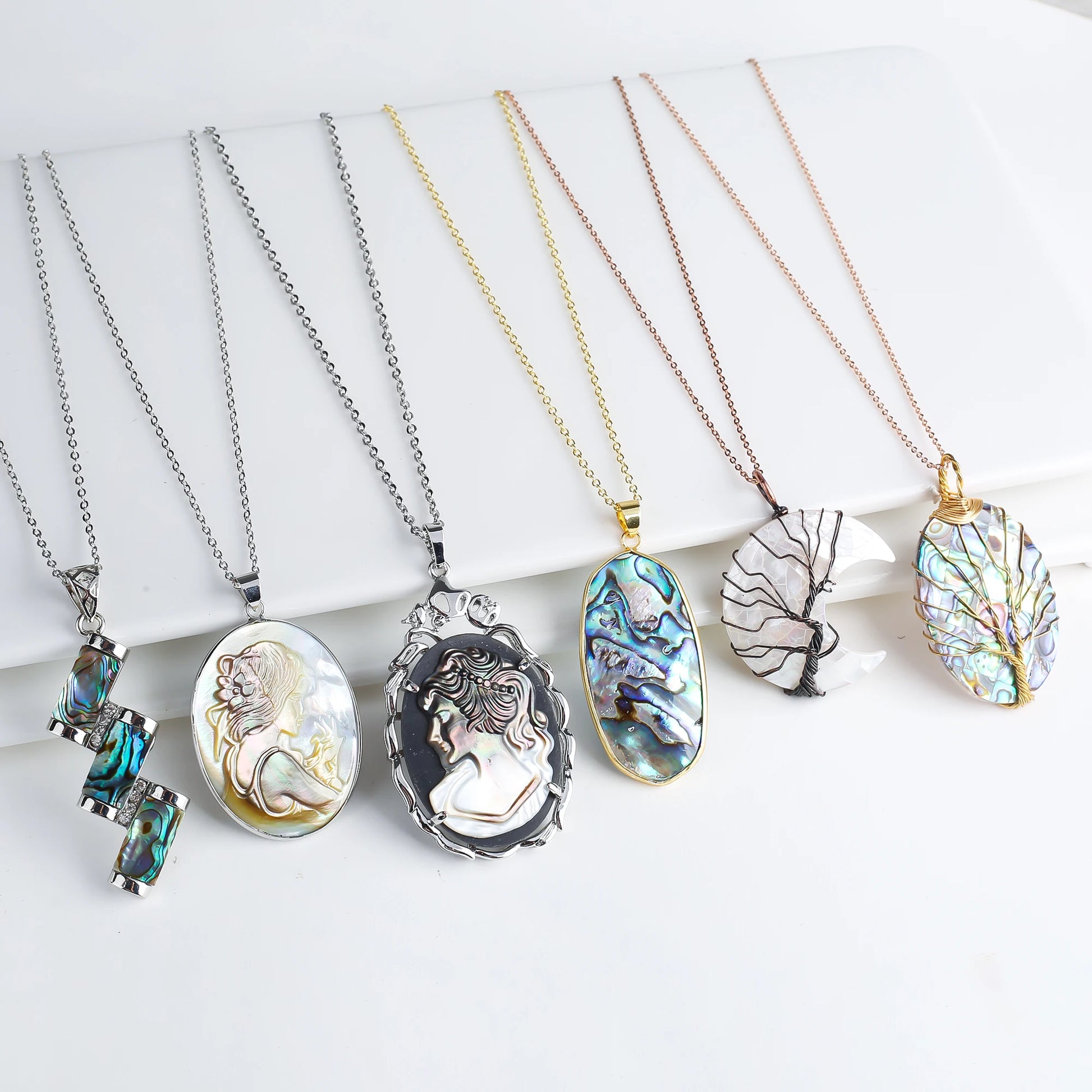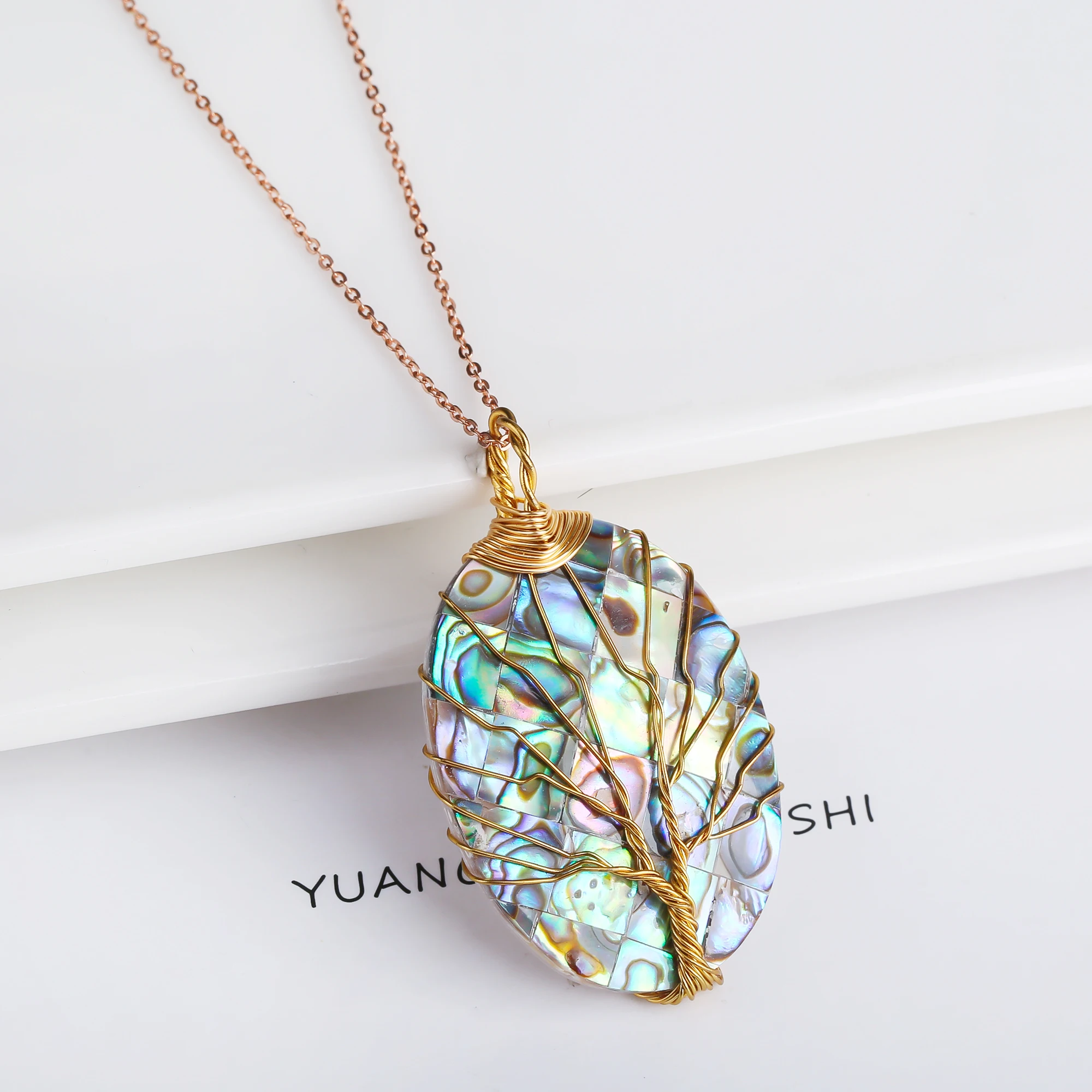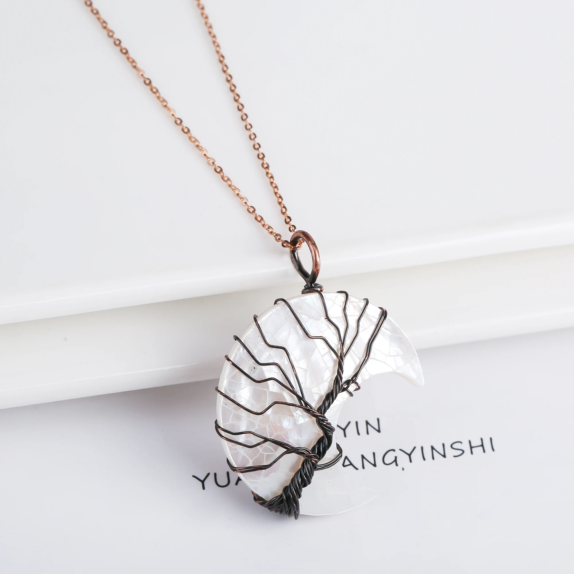 Name: High Quality Oval Natural Seashell Mother Head Pearl Tree Of Life Pendant For Women Copper Choker Necklace Creative Jewelry Gift