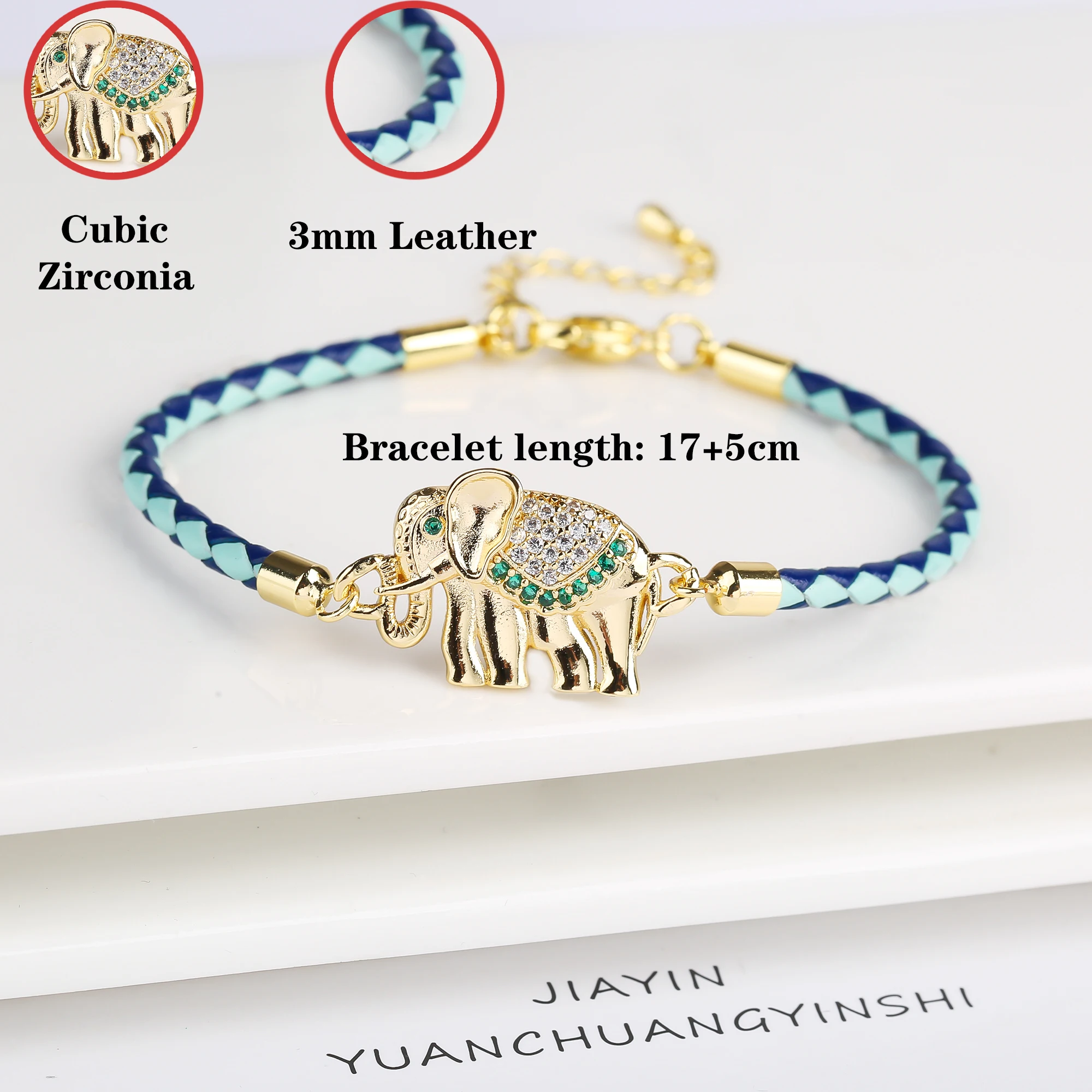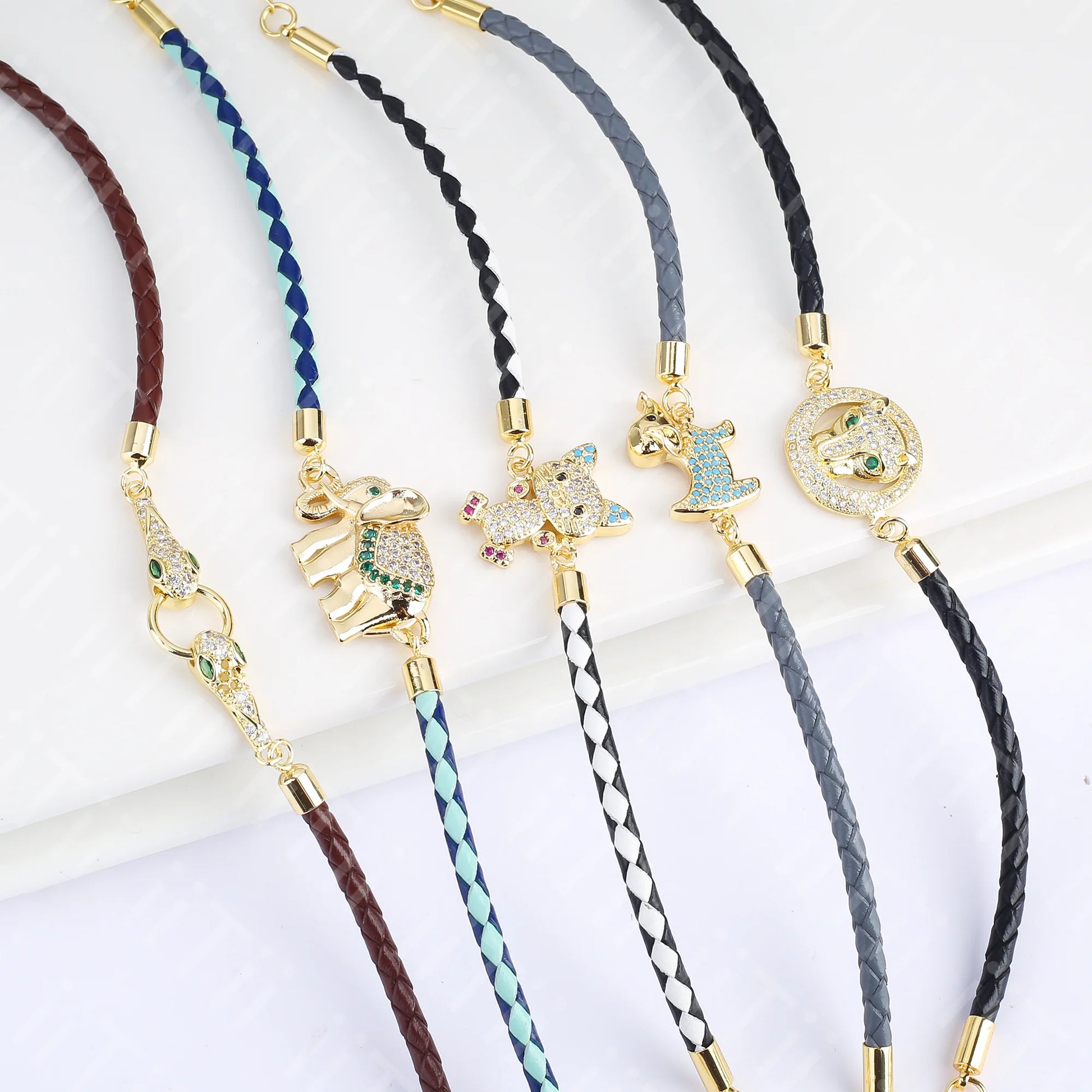 Name: High Quality Zirconia Puppy Snake Elephant Cat Leopard Animal Theme Leather Rope Braided Bracelet for Man Woman Party Jewelry