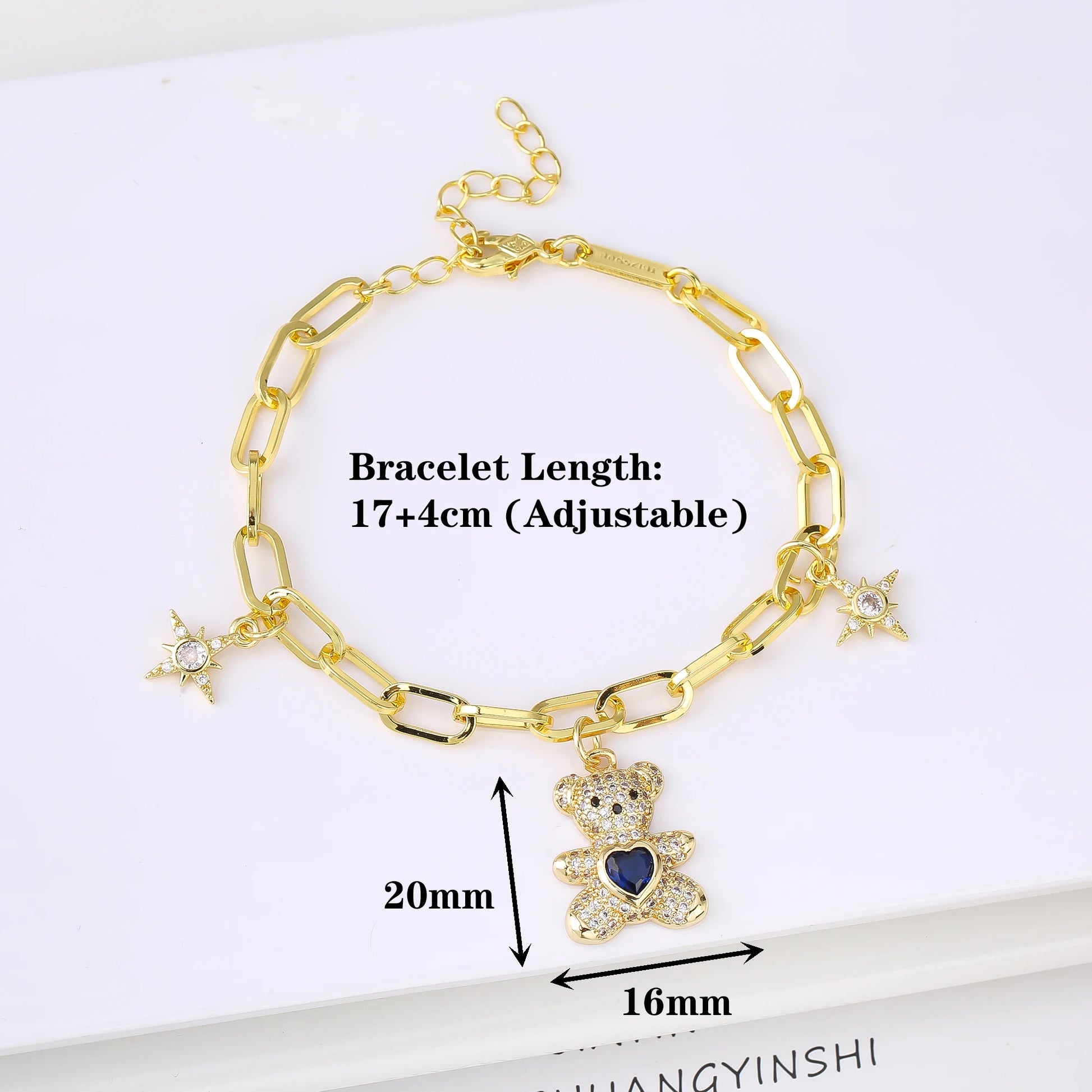 Name: Hot Sale 2PCS Animal Bear Zirconia Bracelet Jewelry Necklace Set for Women Female Daily Party Crystal Jewelry Girl Gift