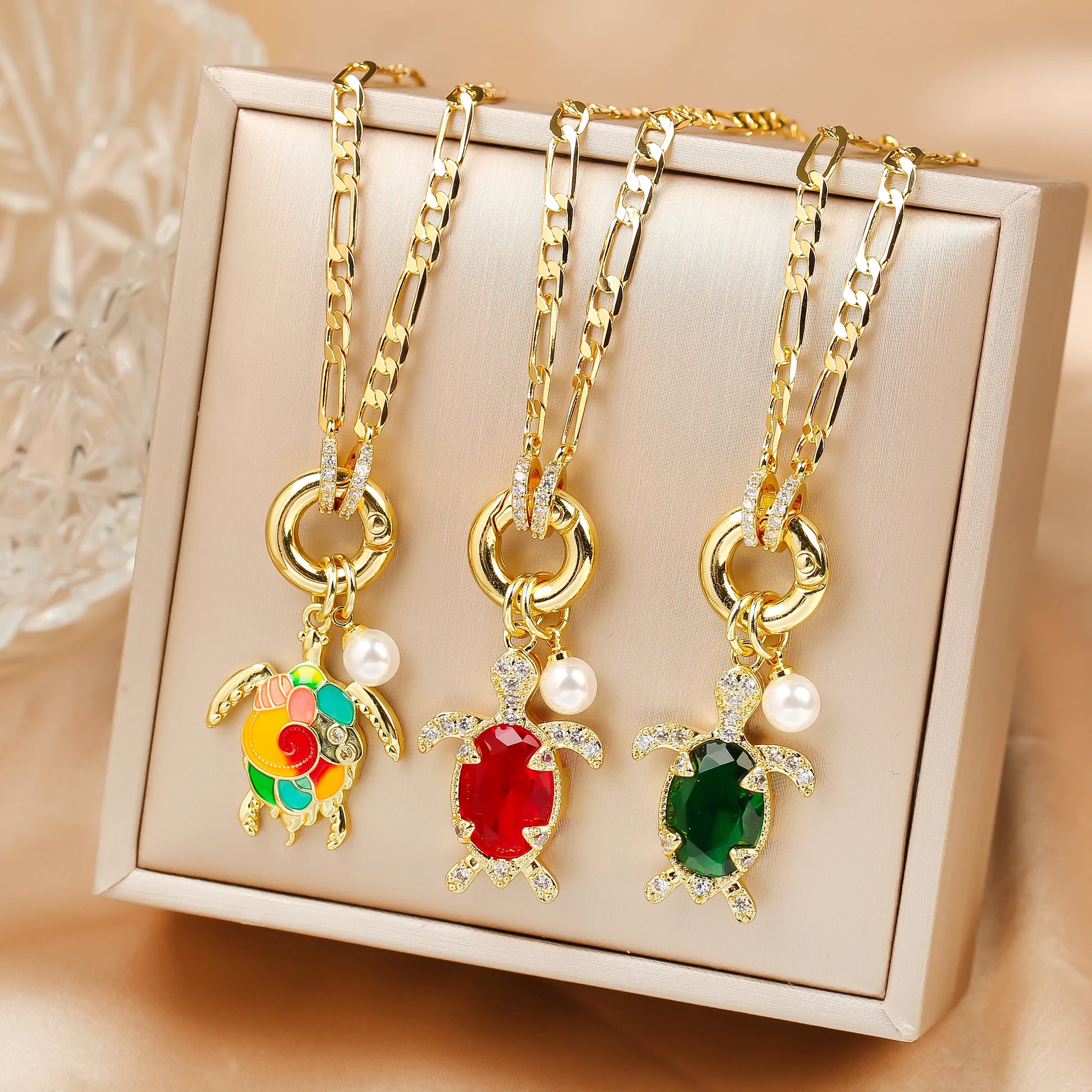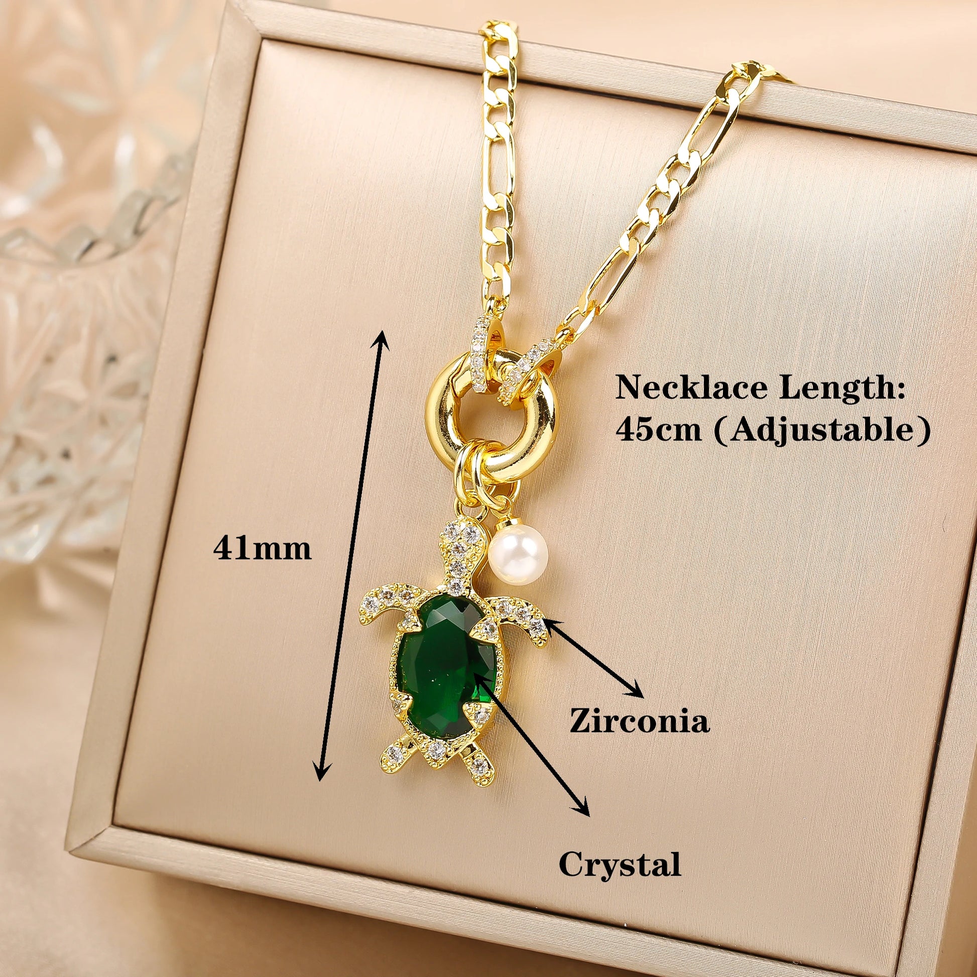 Hot Sale Cute Crystal Sea Turtle Animal Pendant Necklace High Quality Women Girls Casual Party Clavicle Chain Jewelry Gift
