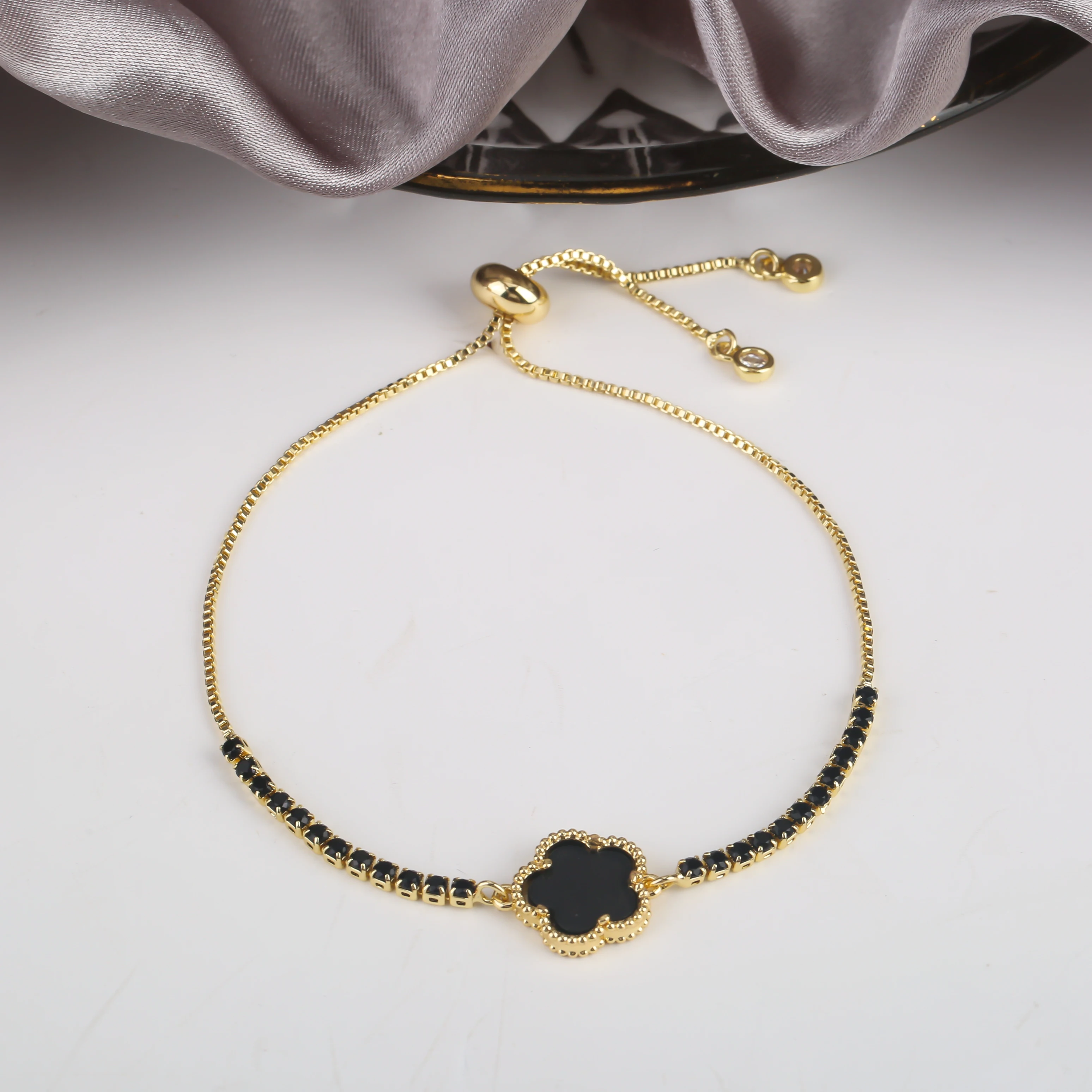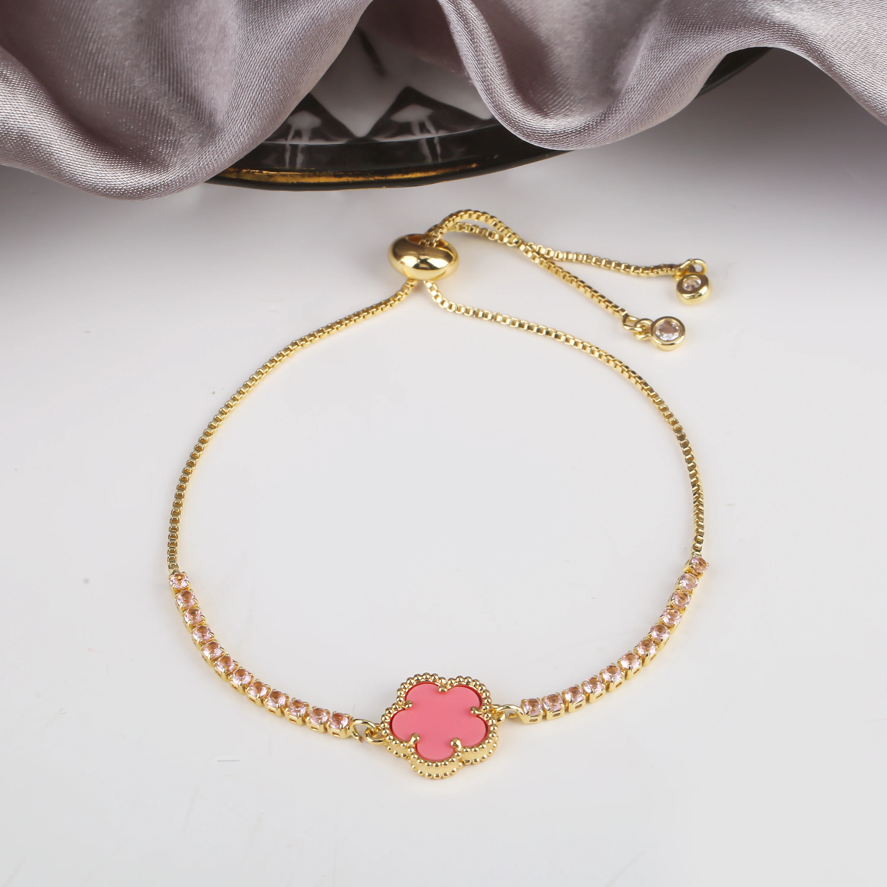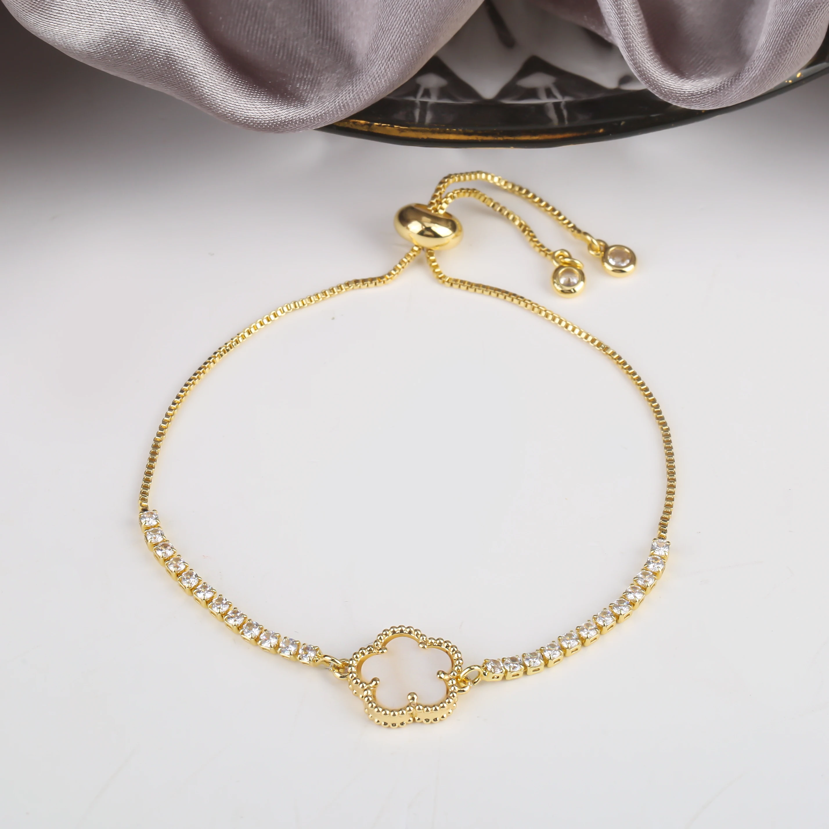 Name: INS Hot Selling Lucky simple Five Leaves Flower Bracelet Shiny Zircon Adjustable Bracelet Classic for Women Party Jewelry Gift