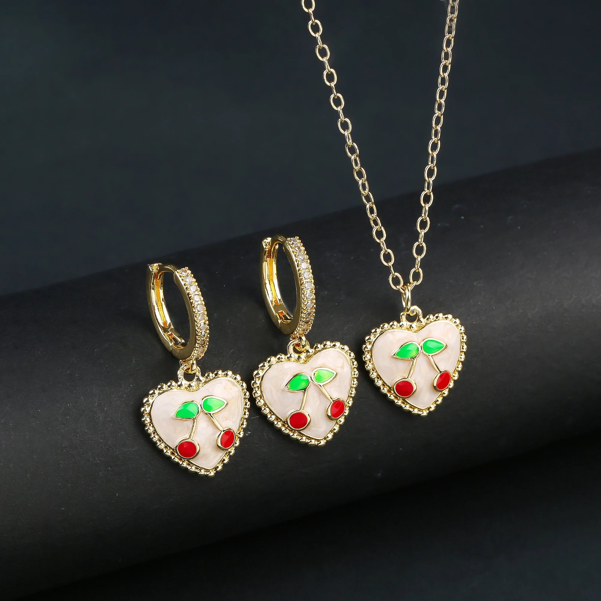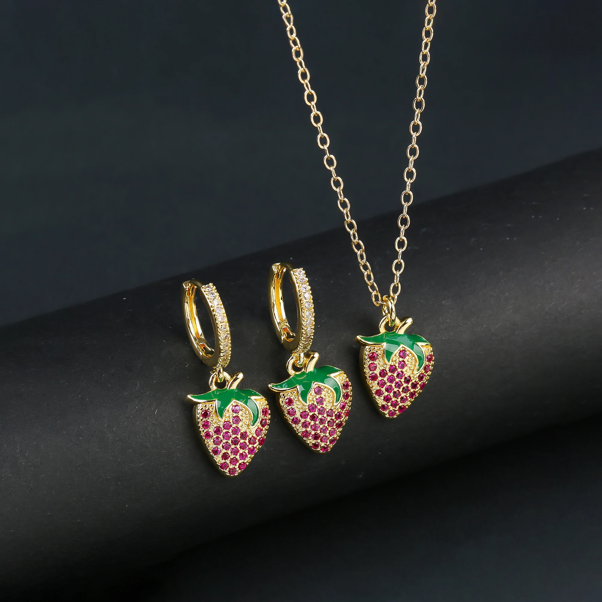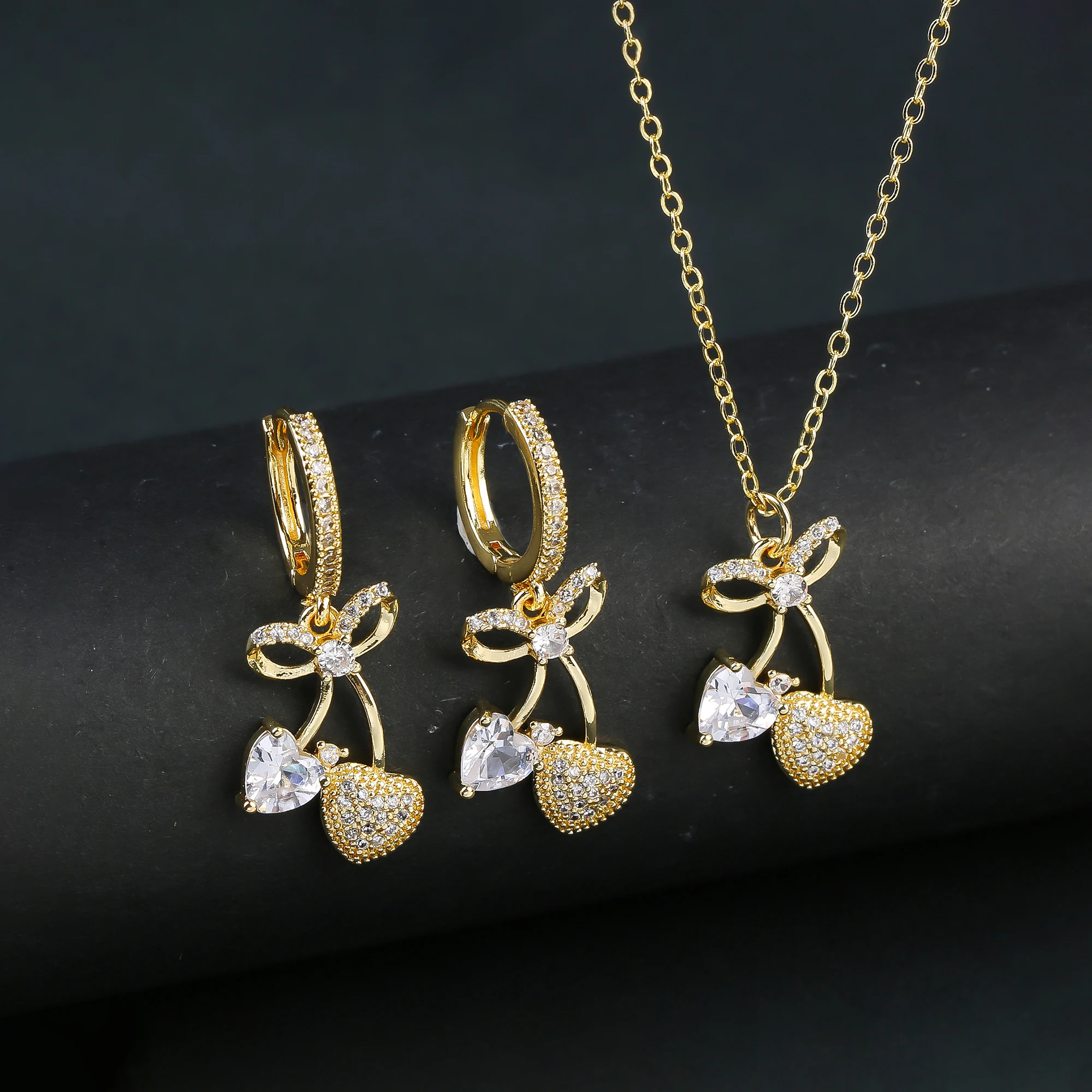 Name: Light Luxury Crystal Zirconia Red Cherry Jewelry Set Earrings Necklace for Women Girls Sweet Jewelry Accessories Party Gifts