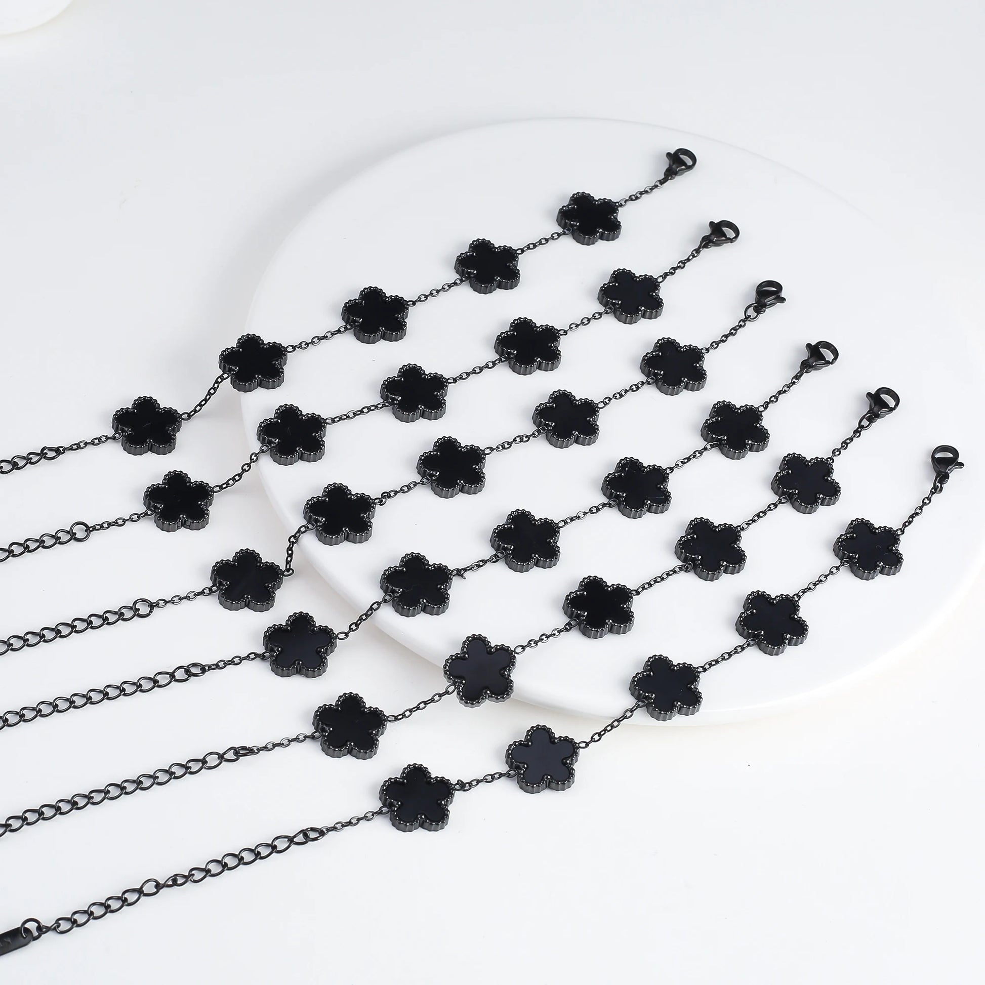 Light Luxury Fashion Stainless Steel Five Leaf Flower Adjustable Bracelet Vintage for Men Women Fashion Wrist Jewelry Clover