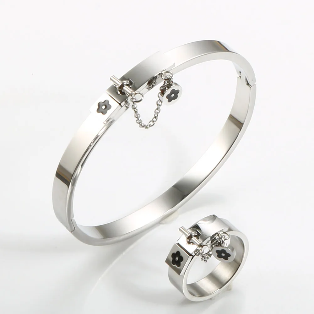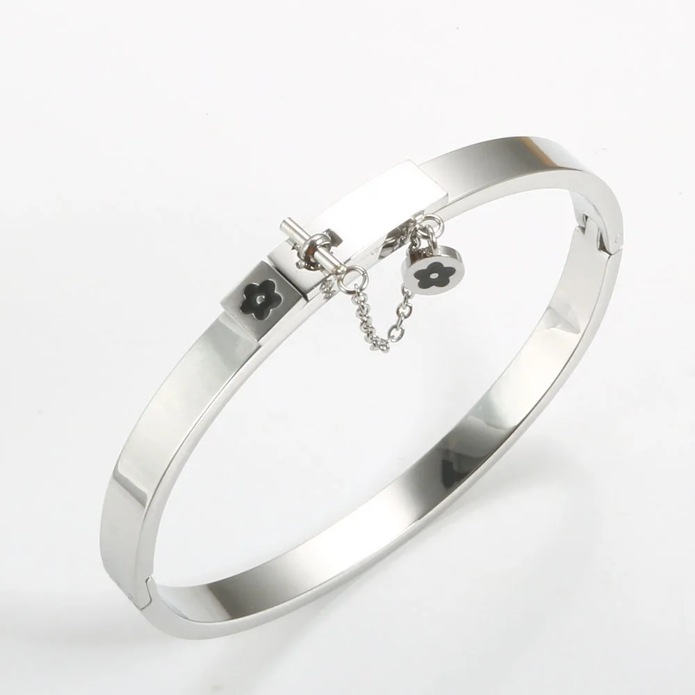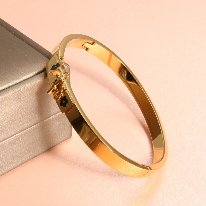 Luxury Gold Color Staiess Steel Lucky Flower Cuff Bangles Women Girls Wedding Party Charm Bangles Jewelry Gift