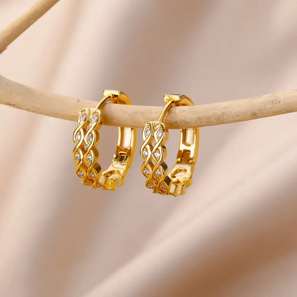 Luxury Zircon Round Earrings for Women Girls Cubic Zirconia Stainless Steel Hoop Ciercing Earring 2023 Trend Aesthetic Jewelry
