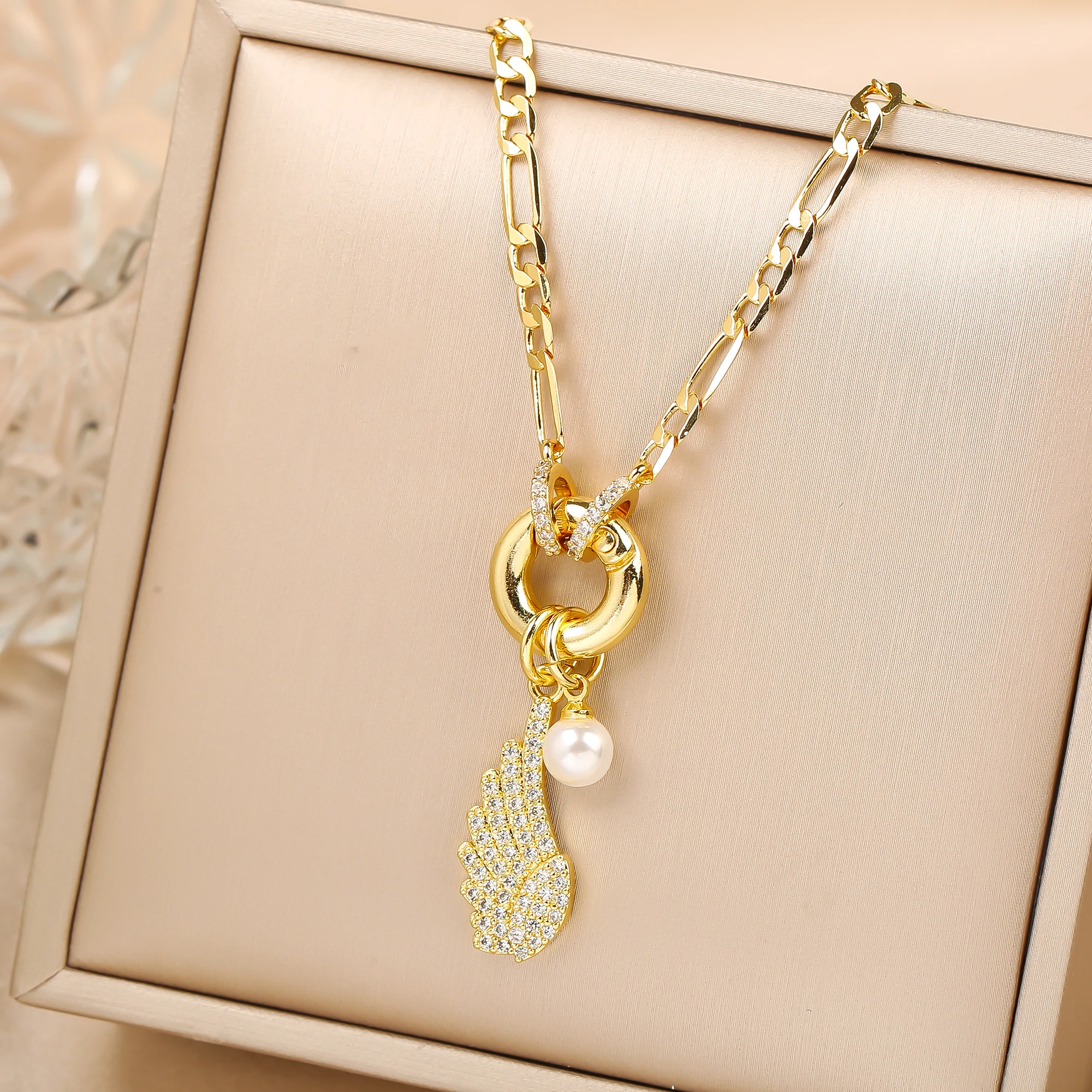 Name: New Creative Shiny Zirconia Conch Flower Wings Theme Pendant Necklace New Fashion Woman Female Vacation Jewelry Accessories